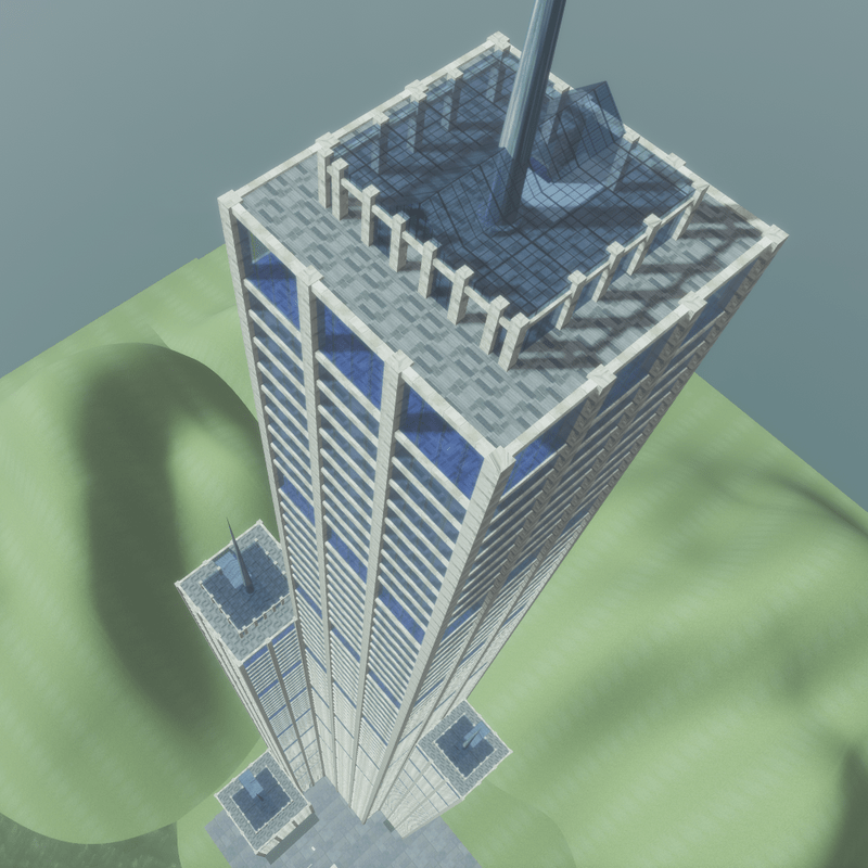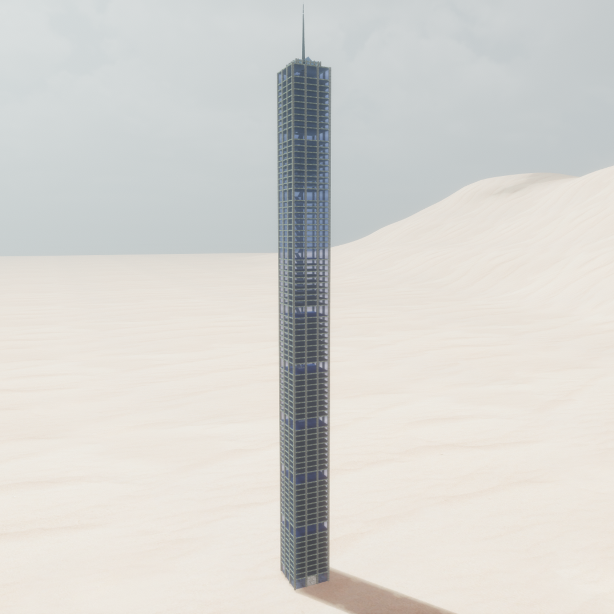 This is a fully functional skyscraper. It has a large lobby, 9 sky decks and a penthouse. It only uses 8 textures. Size = 5870 KB Triangles = 77404 You can visit it at: sansar://sansar.com/experience/ambard/model-testing