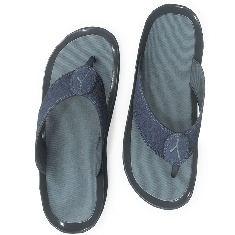 Casual summer sandals made with leather, fabric and rubber in blue colour. Get the free demo item before purchasing here: https://store.sansar.com/listings/1da24e43-e485-492c-aaea-8e06b0af195f/thong-sandals-for-male-av2---demo