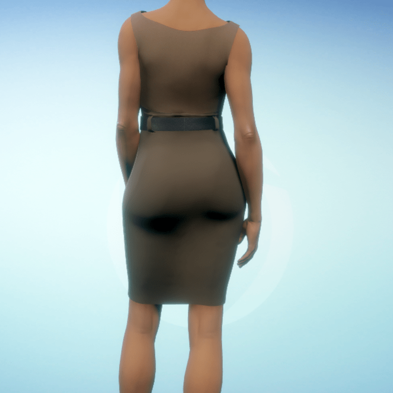 Boatneck executive dress with a black leather belt. By Sweet Distractions Note: You will have to tug the material in some places to get rid of 'poke-through'.