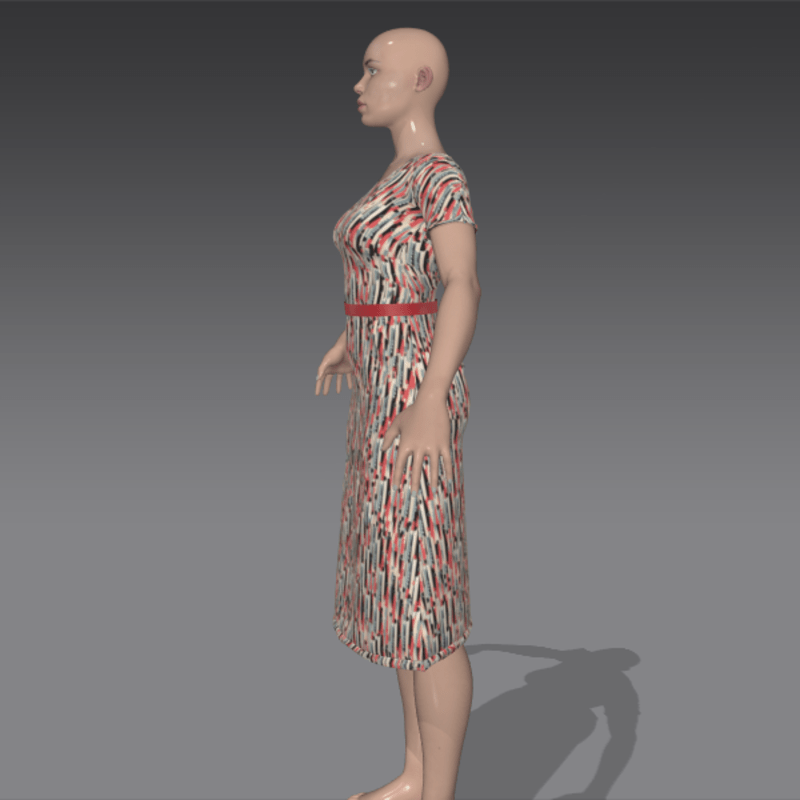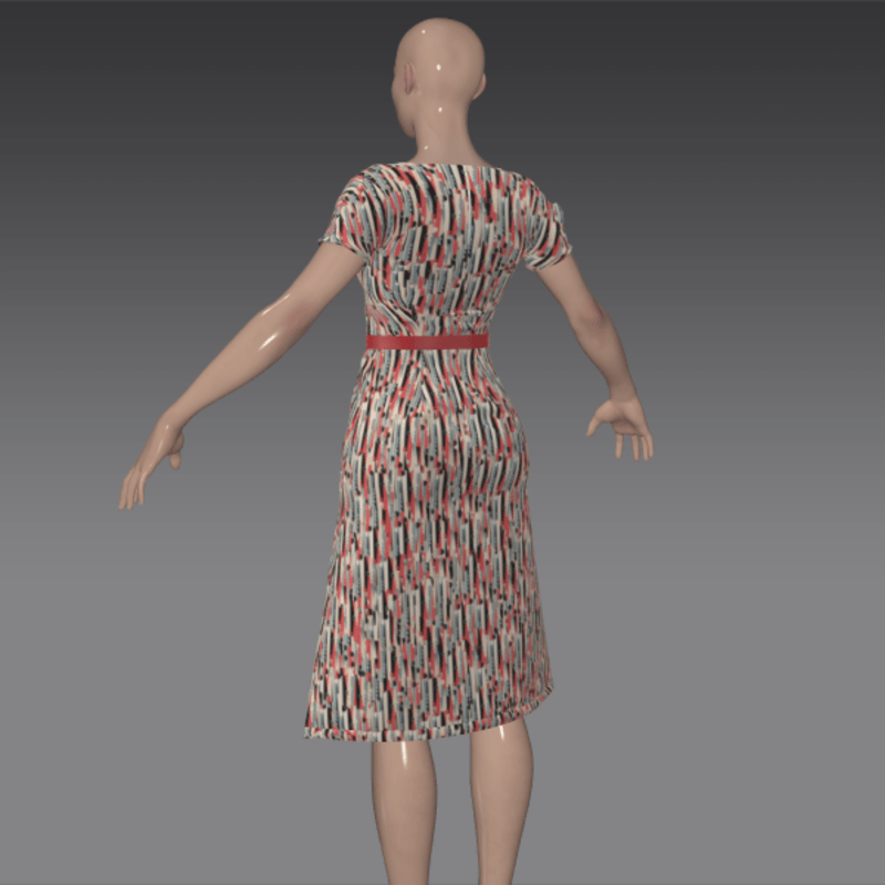 Simple knee-length 1940's cotton frock featuring an art deco pattern.