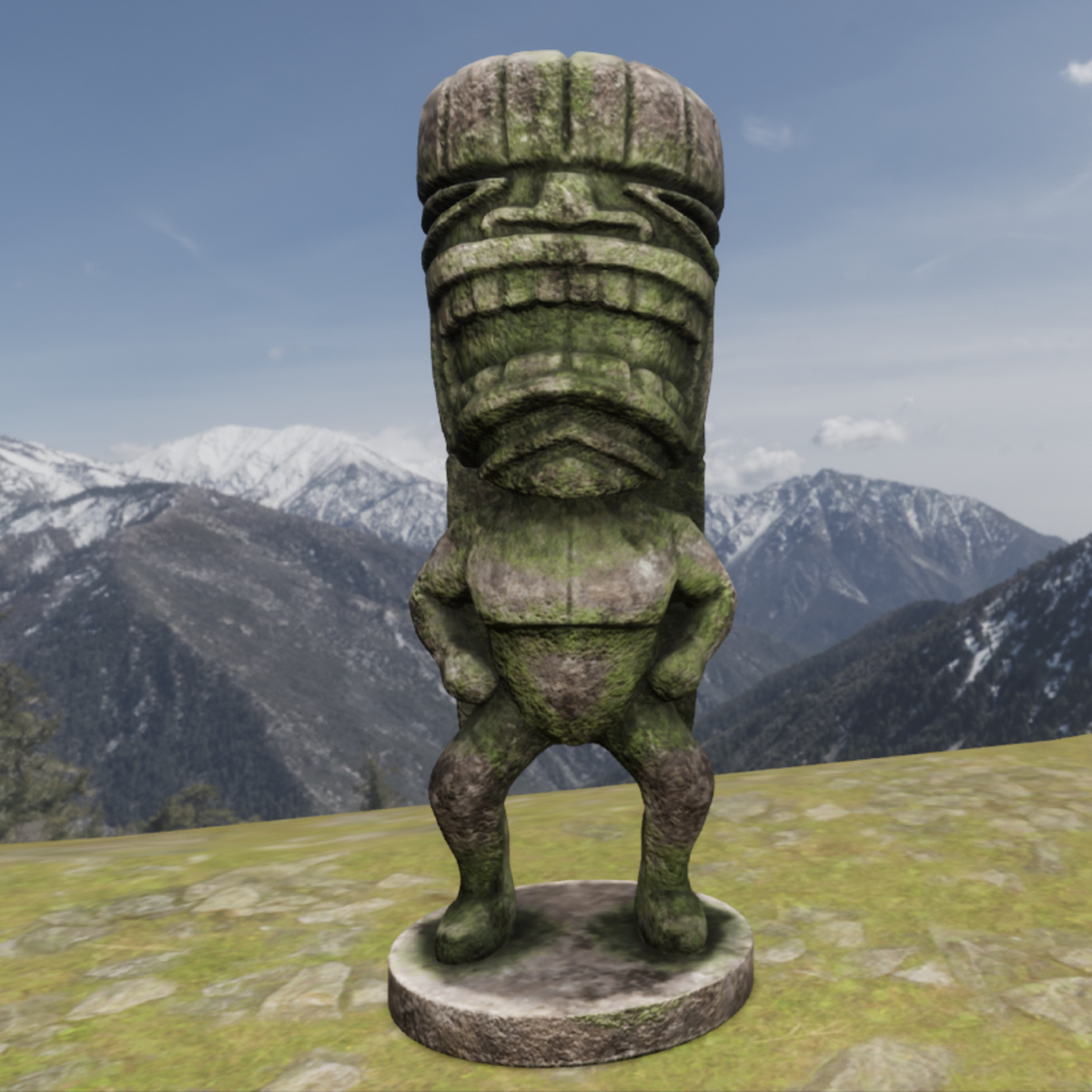 Stone tiki statue high resolution 4K Low poly The base and sculpture can be separated by editing in object structure. All permissions enabled except materials Triangles before going up to sansar. Sculpture: 15.250 Base: 500 Exhibited at TeKnoArtia Gallery https://atlas.sansar.com/experiences/fernandop/teknoartia-gallery I appreciate you rate this product.