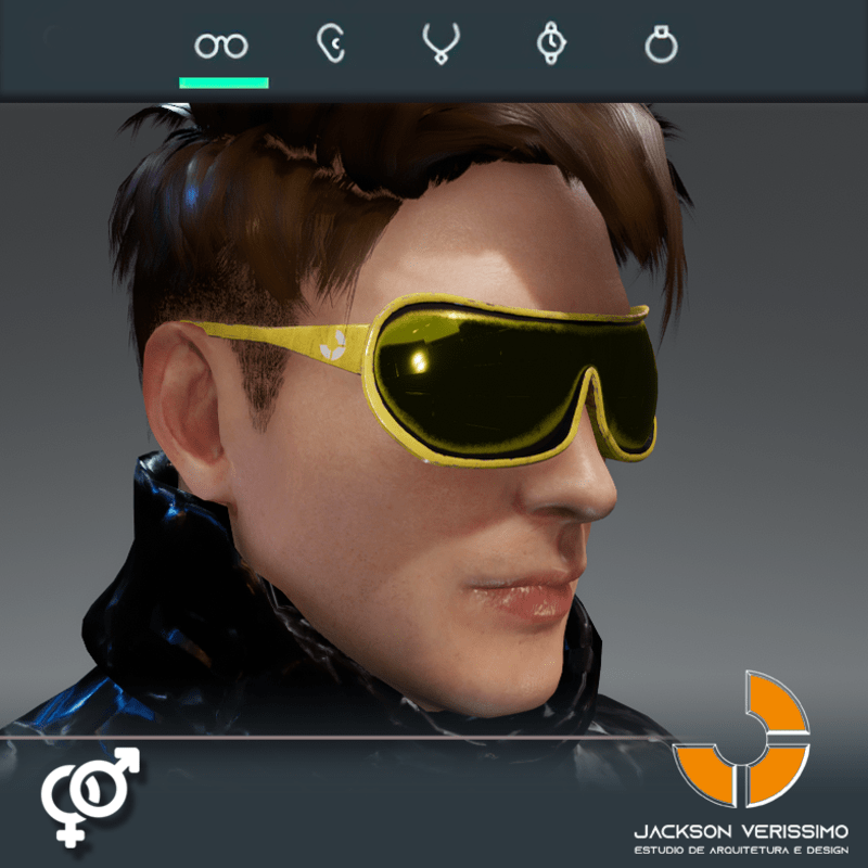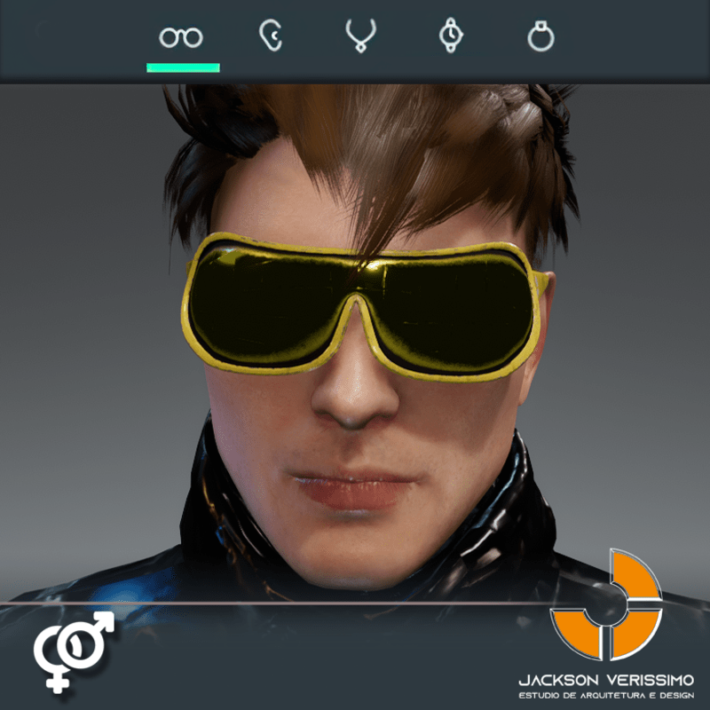 Ai Glasses 1- Yellow is a model of glasses designed with Ai. PBR Textures 2 k Match with all avatars in Sansar. Maybe a adjustment for models diferent of Male Default 2.0 avatar of Sansar.
