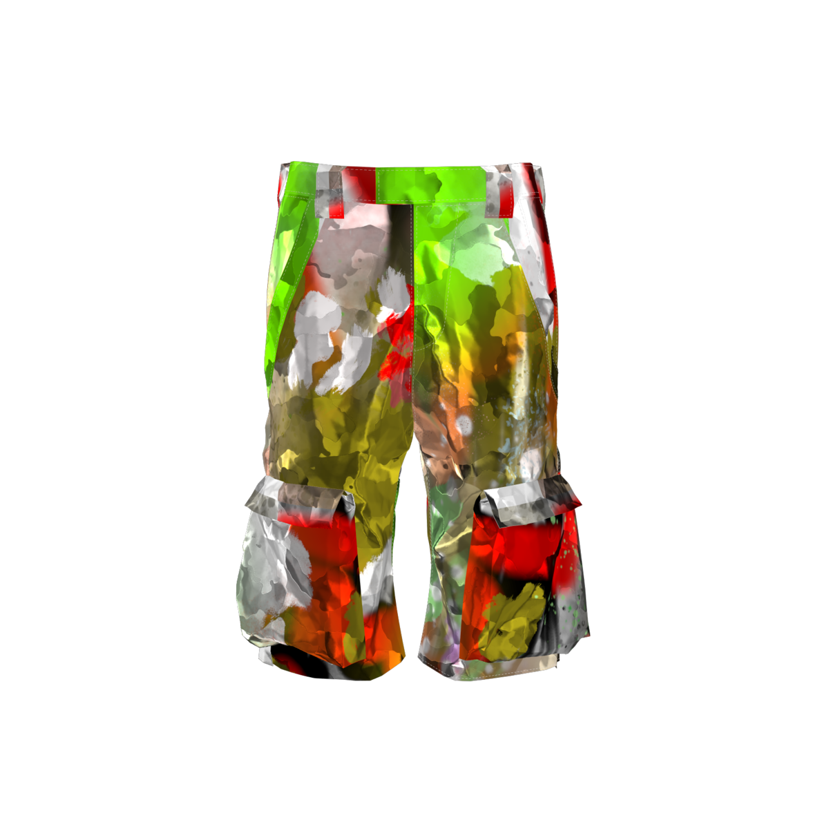 Cargo Shorts with 8 pockets. Paint splatter print and multiple logo variations. Loose fit and holographic camouflage pattern. ***Original CP1919 piece***