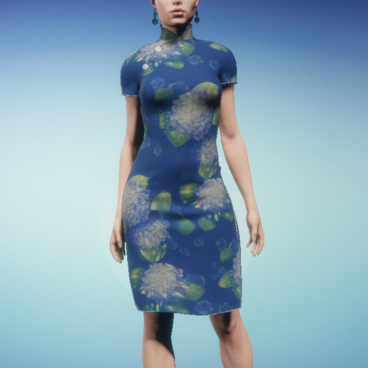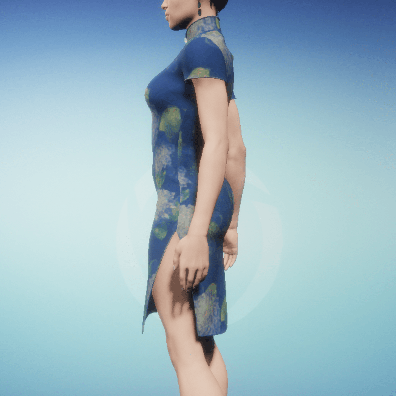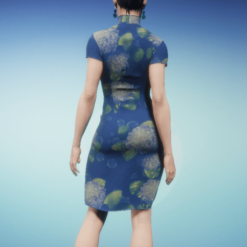 Women's blue hydrangea Qipao