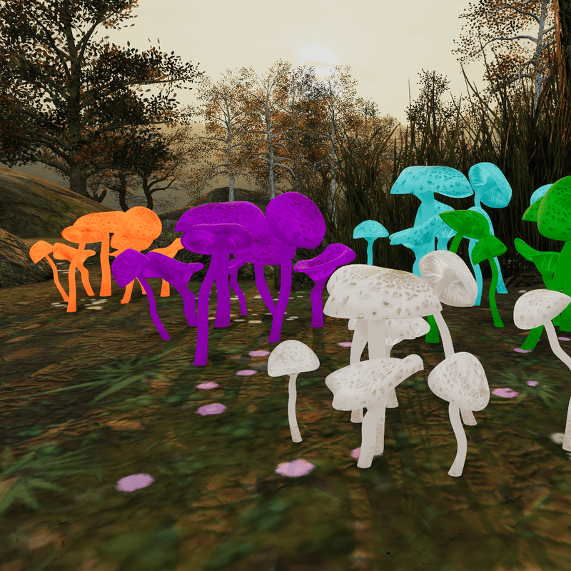 Emissive Mushrooms in Purple. No need to buy all colors! You can change the color and brightness in Materials Tab. Collision: No See at: https://atlas.sansar.com/experiences/bluebell/bluebell-home-garden-wip