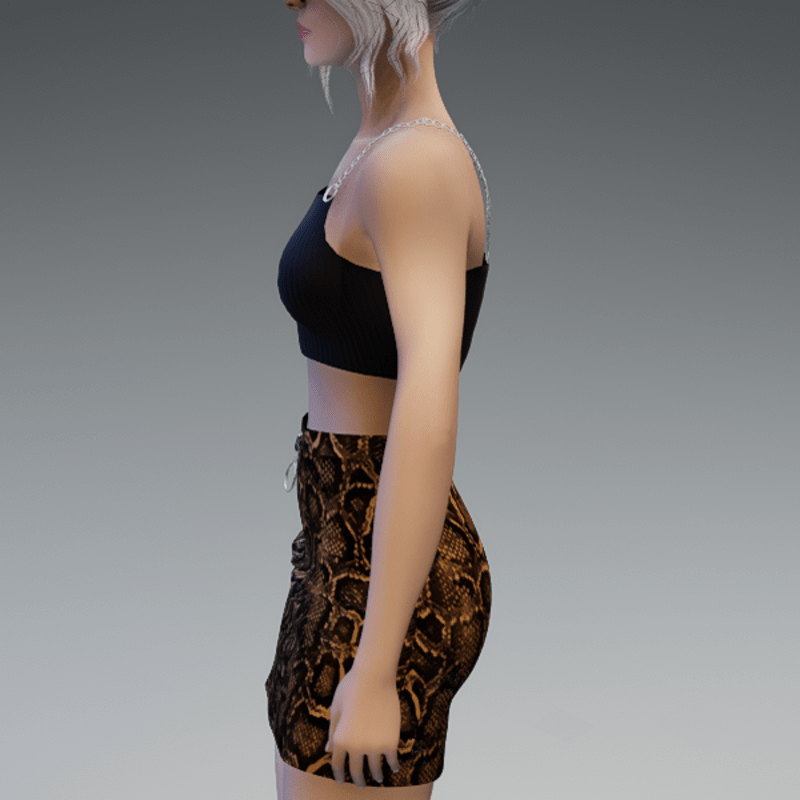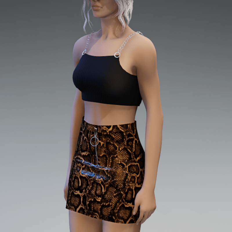 This skirt comes with a highlighted plastic snake fabric and a zipper on the front. Enjoy! <3