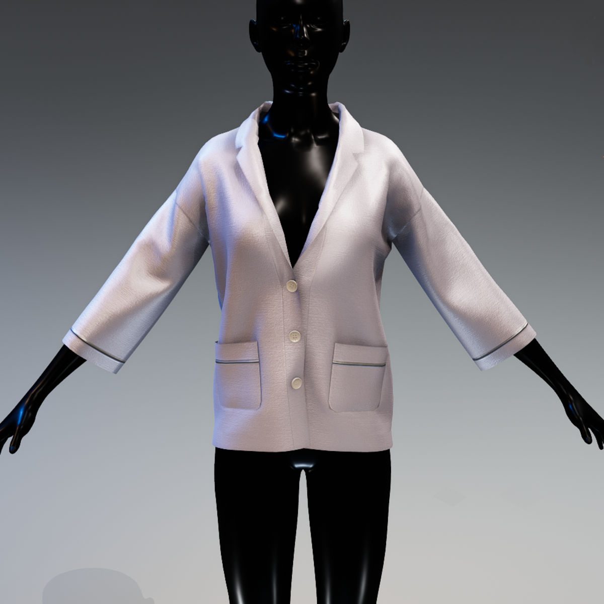 A classic design pajama jacket with a modern cut made with silk fabric in a very light pink - purple colour.