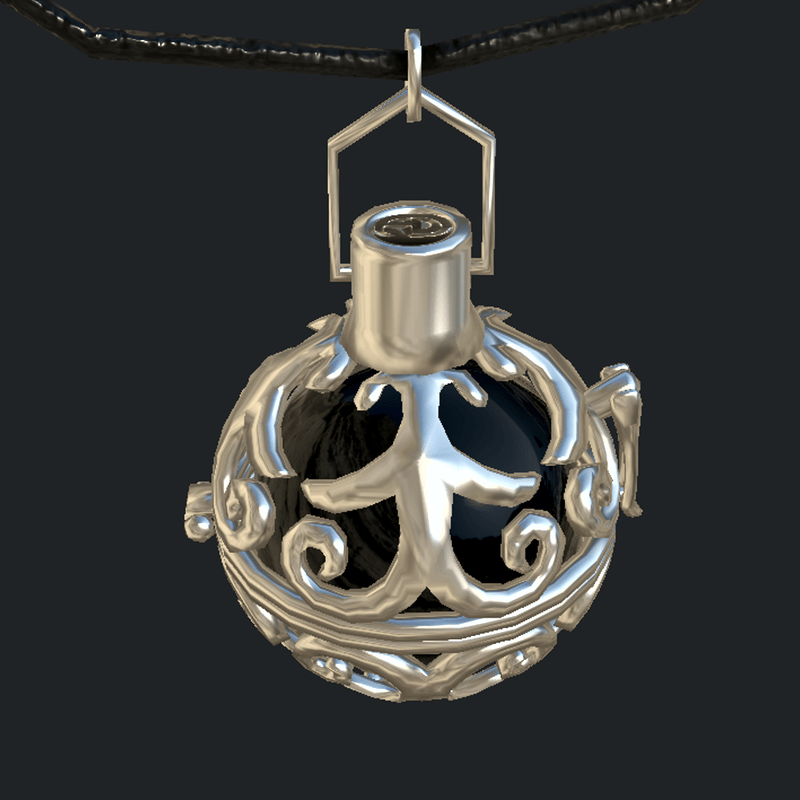 The Engelrufer (angel caller) can call an Angel for you, with black 20mm Ball and black Leather Lace. In 925-Sterling Silver. https://atlas.sansar.com/experiences/seantaurog/madcap-shoe-shop