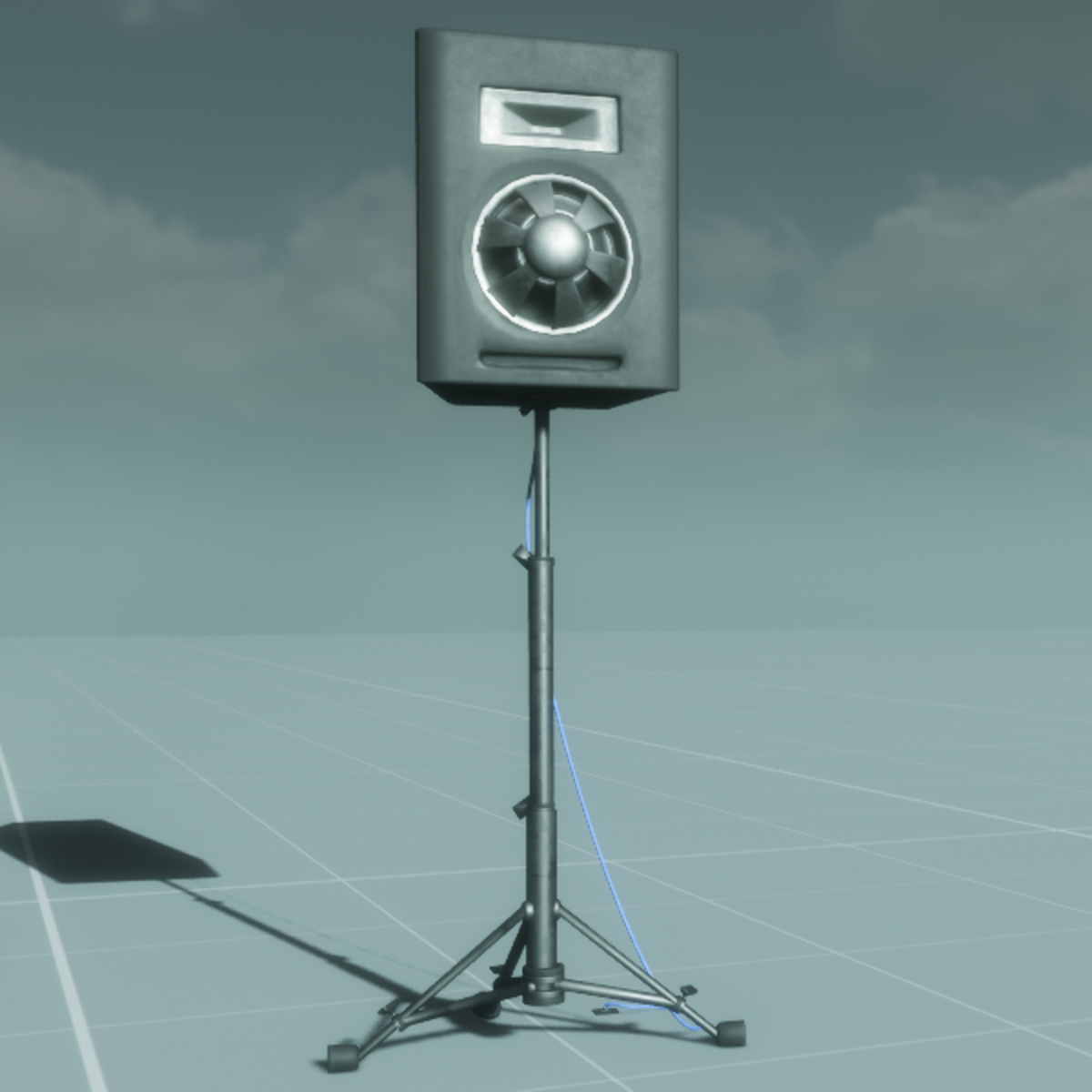 A round-face speaker mounted on a stand.