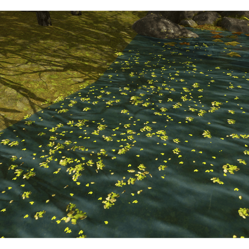 Duckweed for ponds and lakes. Use by placing on top of transparent water. Object is a flat round shape with scattered duckweed on transparent background. No collision. 16 triangles. FREE
