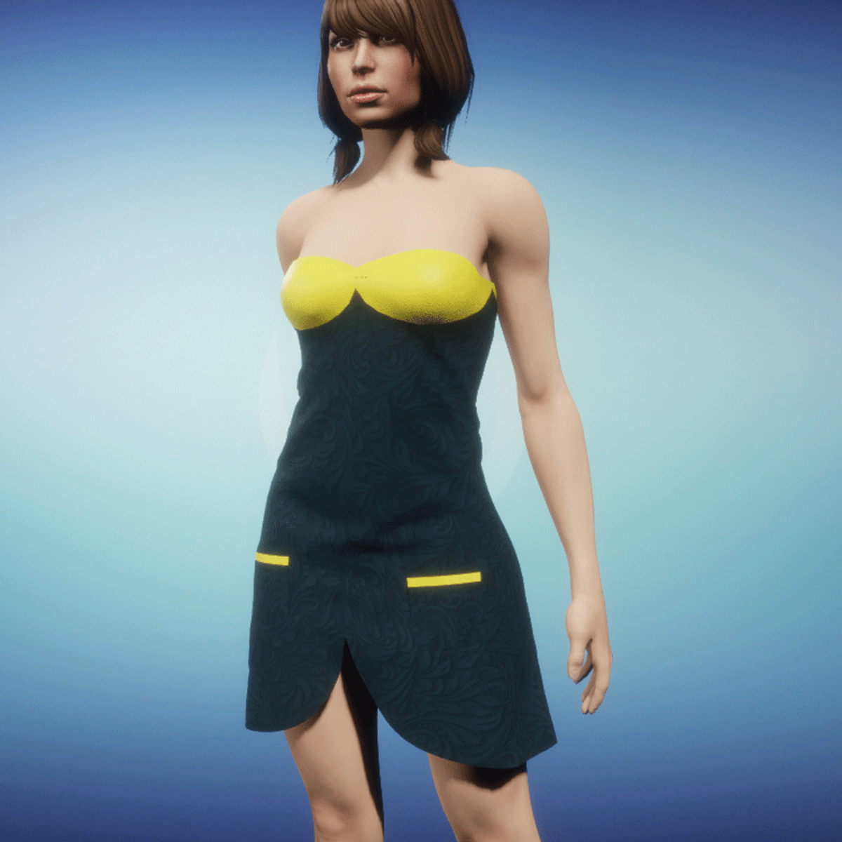 Modern summerdress with leather parts! Please simulate the clothes before wearing to adjust it optimally.
