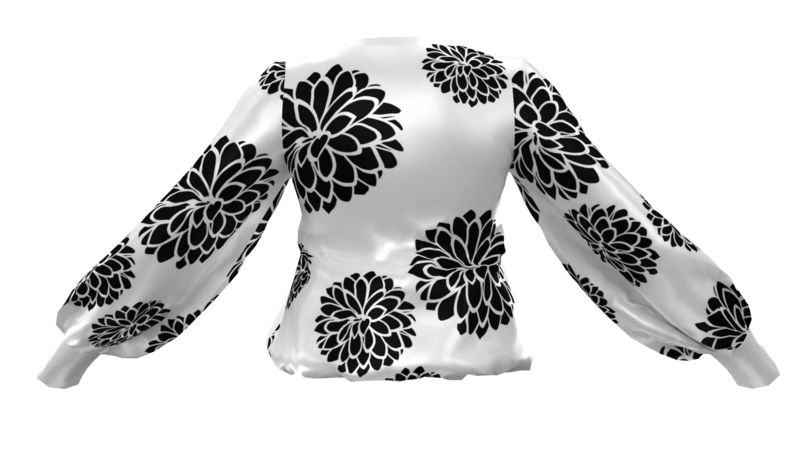 Beautiful White Silk Shirt With Black Flower PRint With Bishop Sleeve For Casual Wear