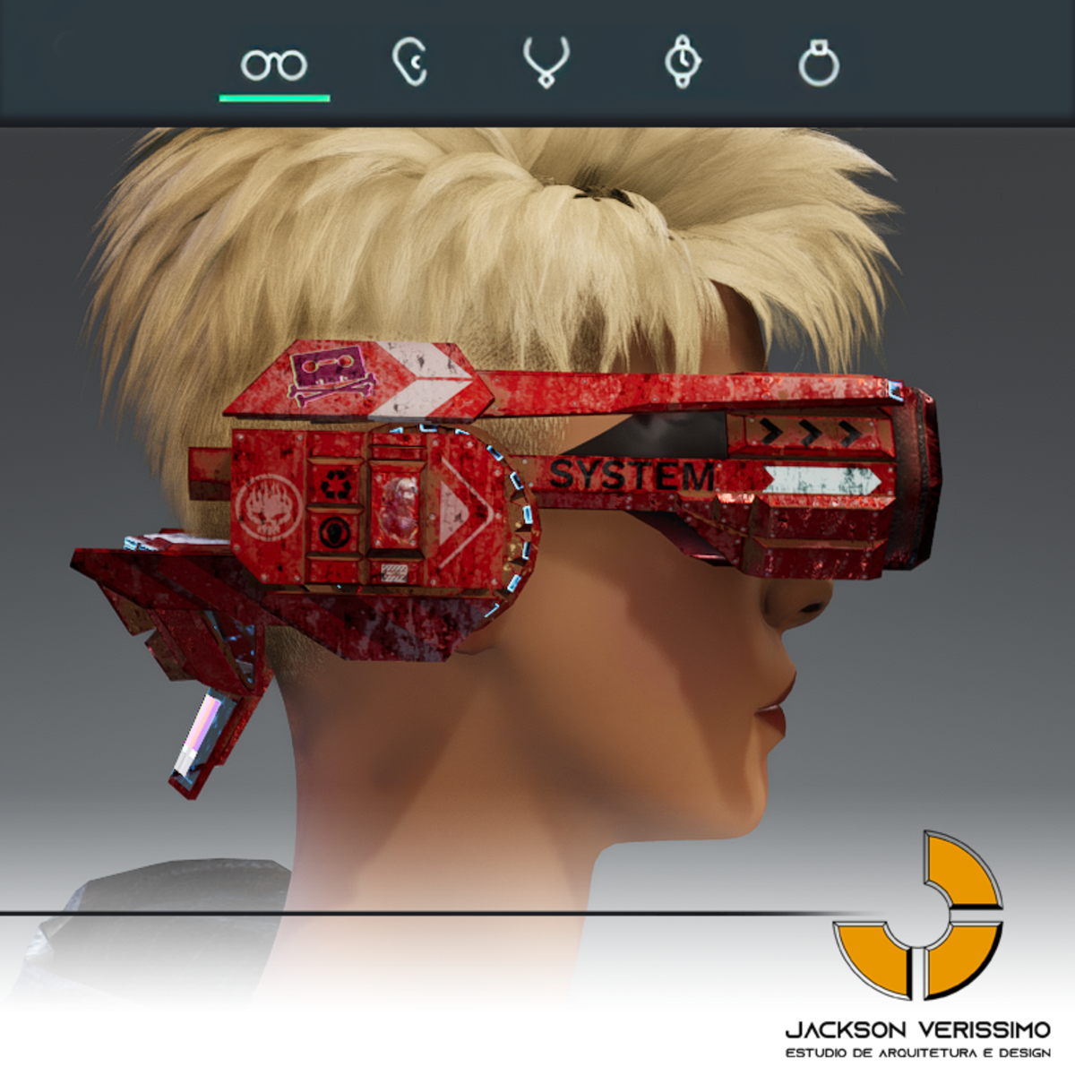 Visionary Design for a VR Headset exclusive for the Sansar Metaverse. Special and High Quality Texture. Vr glasses with headphones, Emissive lights and Media Screen. Unisex. Matches with all humanoid avatars. No need for adjustments for the default 2.0 Avatar of Sansar.