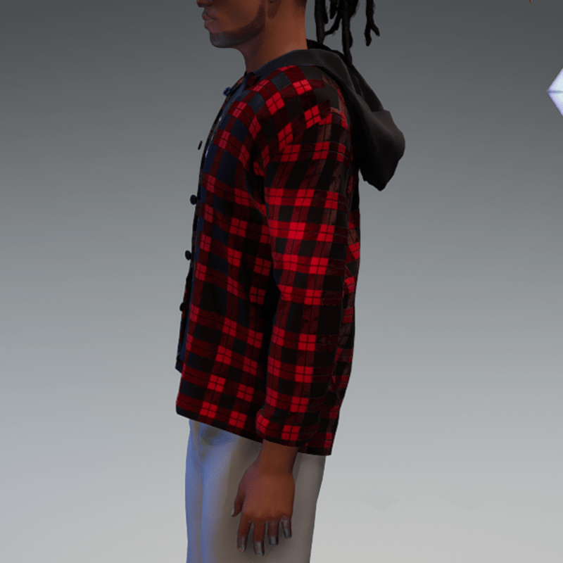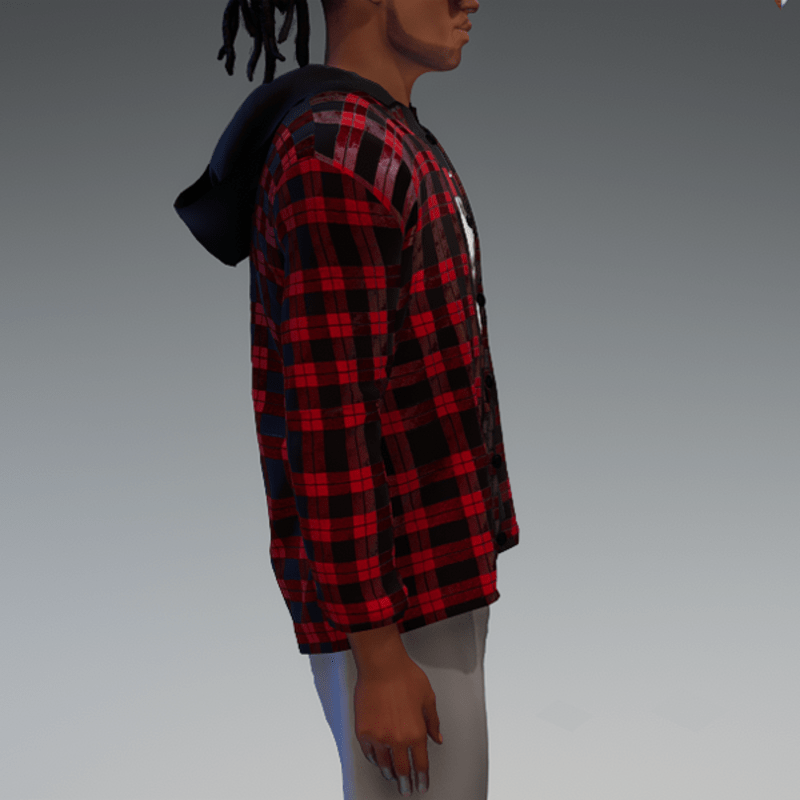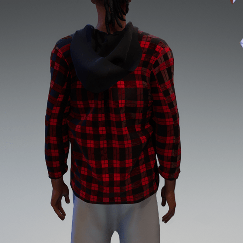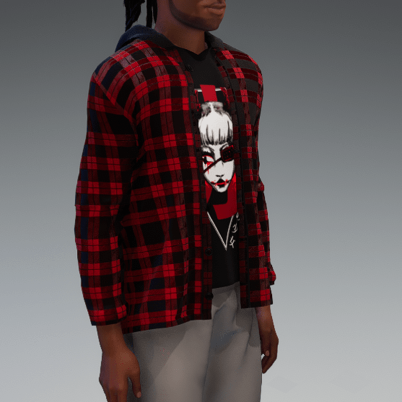 - 'Bloodgirl' Men Checkered Shirt & Hoodie in Red & Black