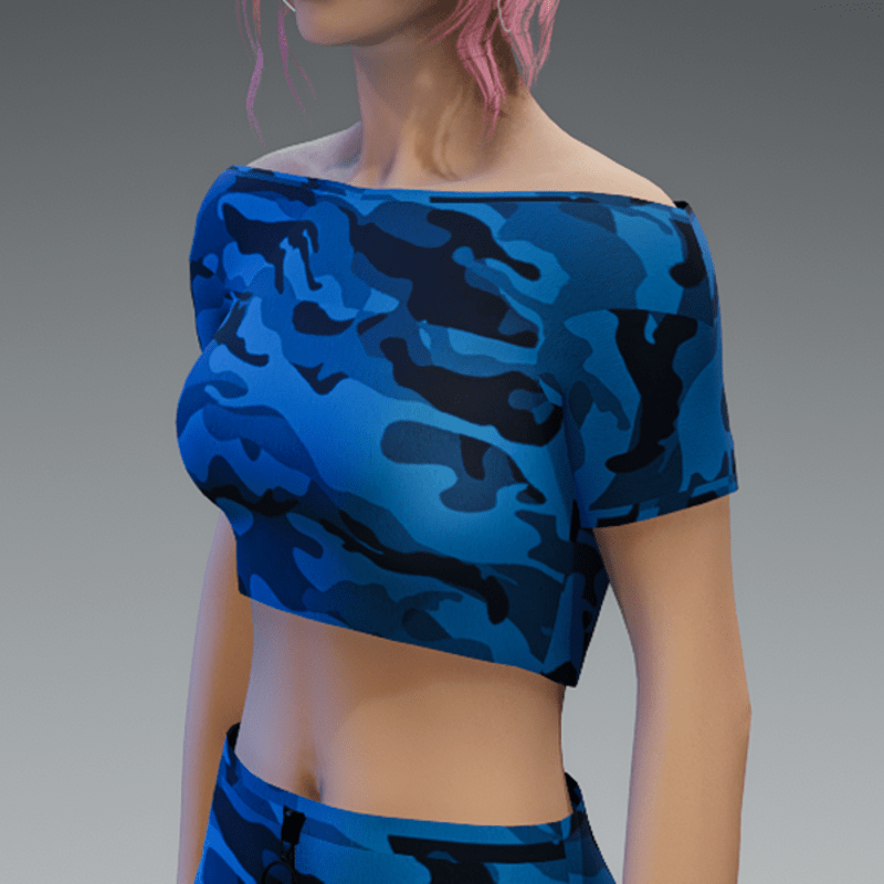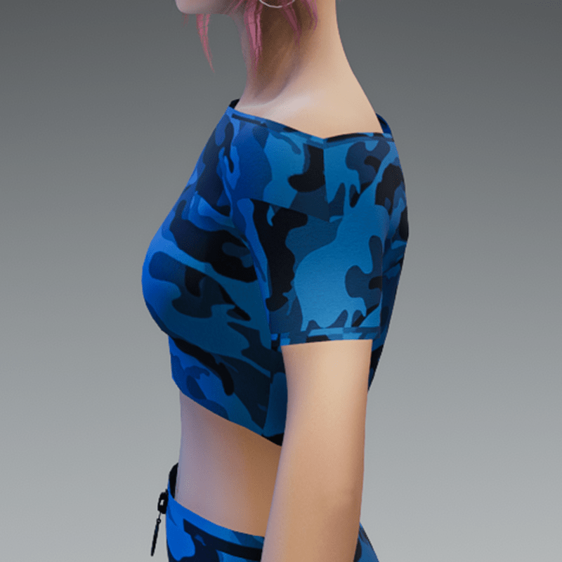 My basic crop top in blue camouflage. If you're not sure about how this one would look on your avatar, feel free to try my free version before you're going to buy this one. And if you're looking for the skirt i used in the pictures - you can find it in my store, too! Enjoy!