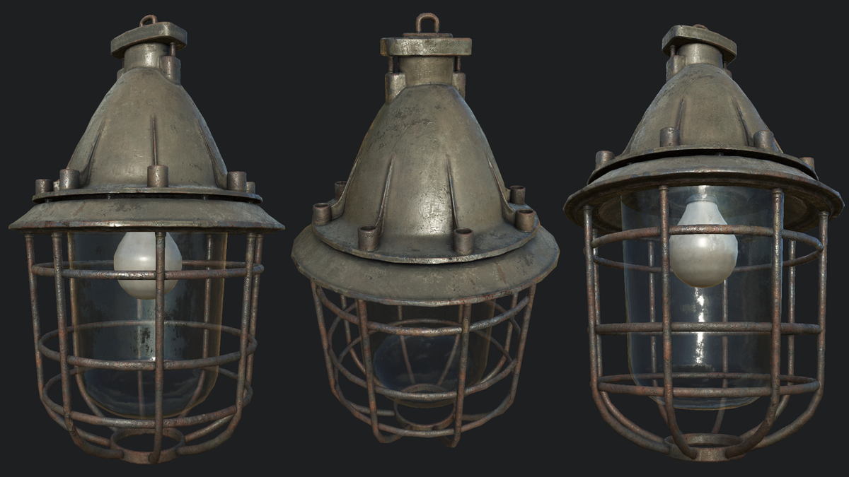 Bunker Ceiling Lamp PBR Very Detailed Low Poly Bunker Ceiling Lamp PBR with High-Quality PBR Texturing. Fits perfect for for lightning and decoration Created using 3DSMAX, Zbrush and Substance Painter. Seperated Meshes so you can work with the bulb inside, for emitting light, and the glass is also a seperated. The Light Bulb inside already has Emit Material, just adjust the level, or color in materials.