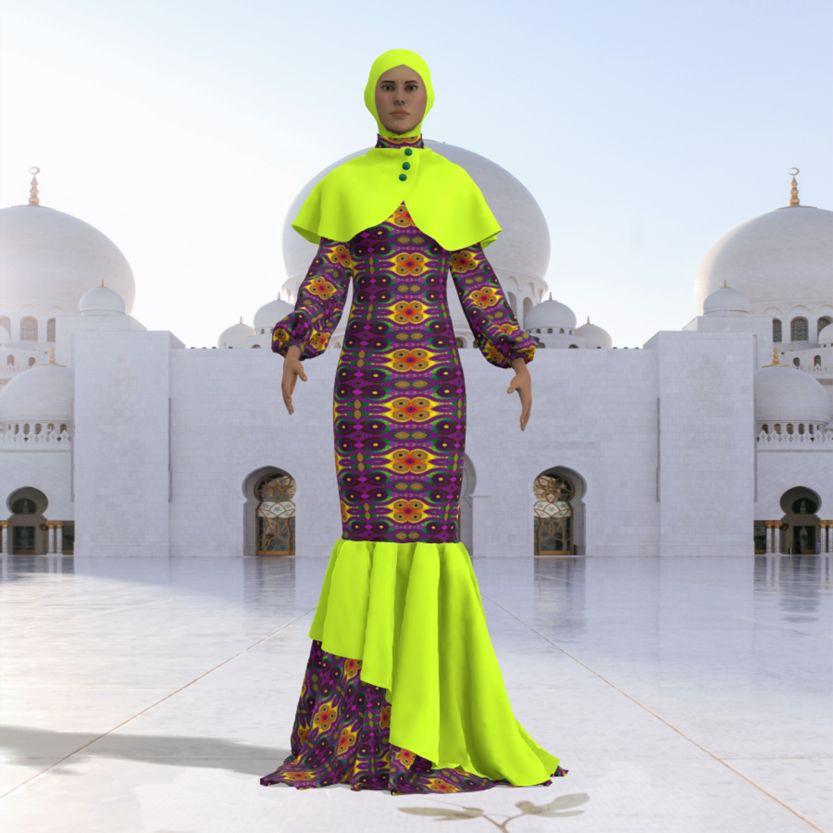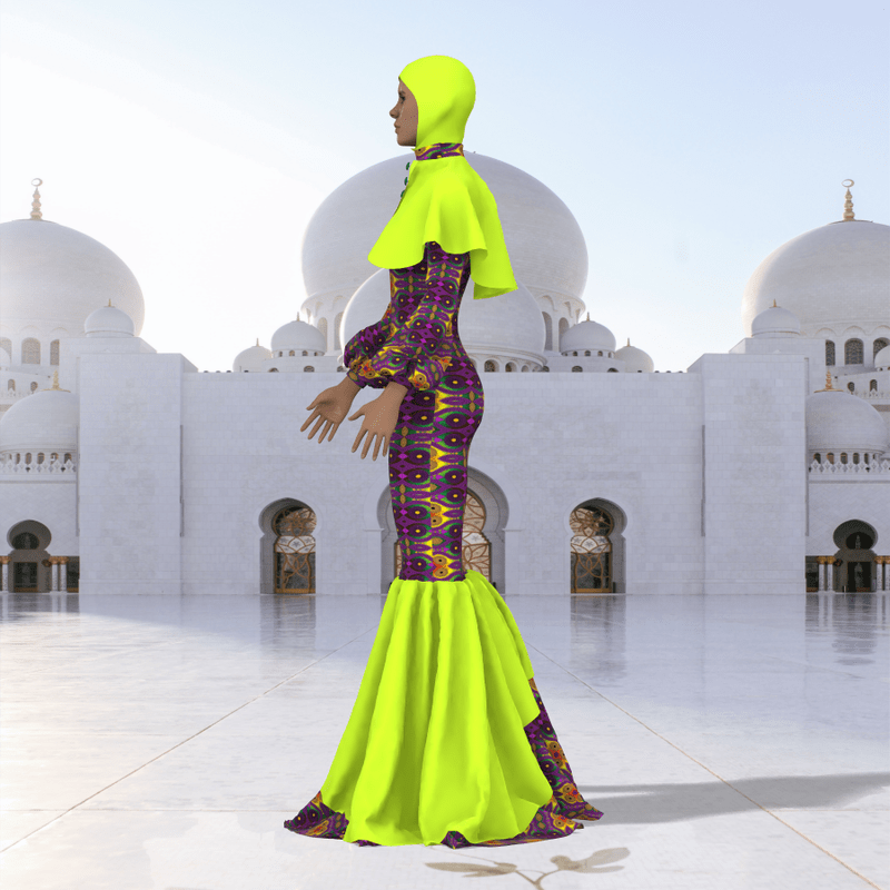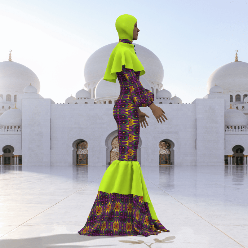 Do you want to celebrate EID on Sansar Here is a Female cloth for EID with African fabric, and a hijab. It is a long flowing gown with nice aesthetics, the cloth may appear with darker shades when stimulated. Made on the default avatar Stimulate and Enjoy EID MUBARAK