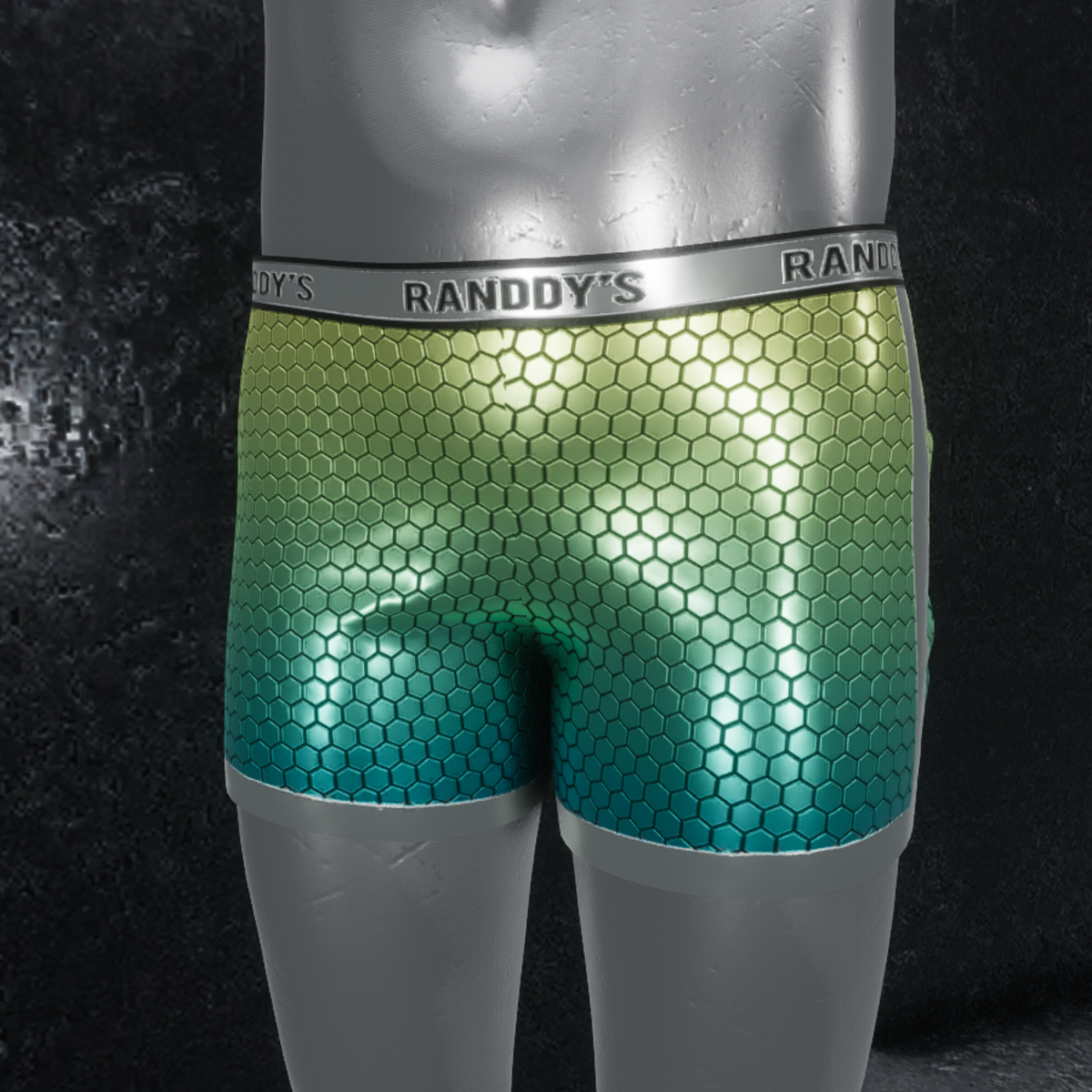 High quality boxer briefs made of realistic metallic hexagon material with logo on the waistband, readdy for avatar 2.0. Please don´t forget the ratings ;) Feel free to simulate the clothes before wearing it to adjust it optimally. Visit my store inworld: https://atlas.sansar.com/experiences/randdy/rr-fashion-shop