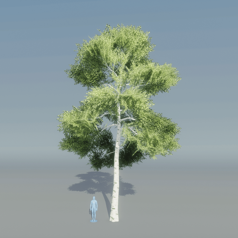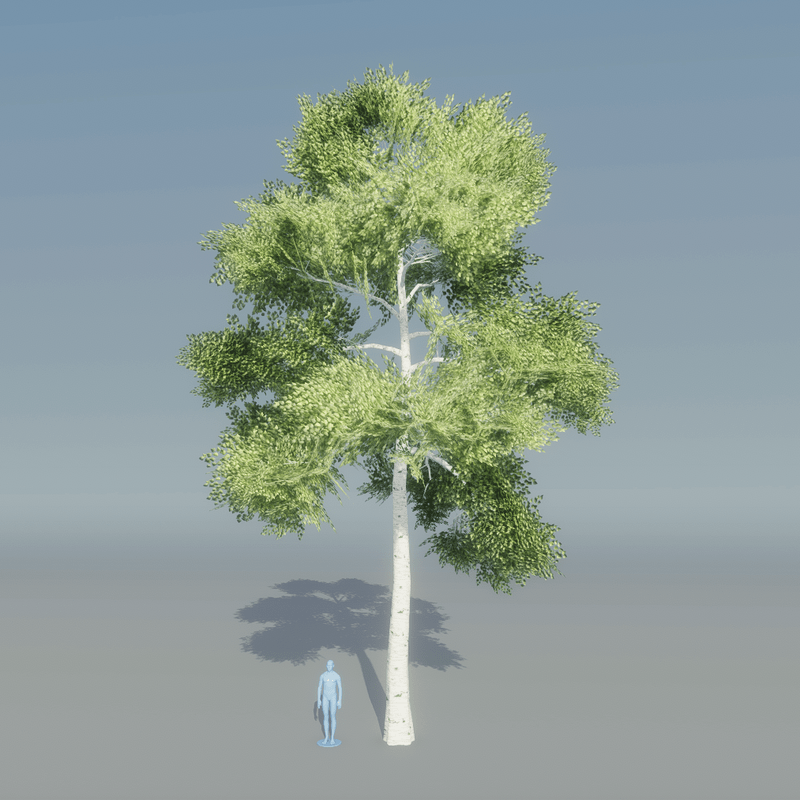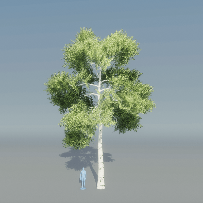 Birch Tree variation 1 5590 Triangles Trunk collision You can see it at The Worlds factory: https://atlas.sansar.com/experiences/lluisindigo/worlds-factory#BirchSP