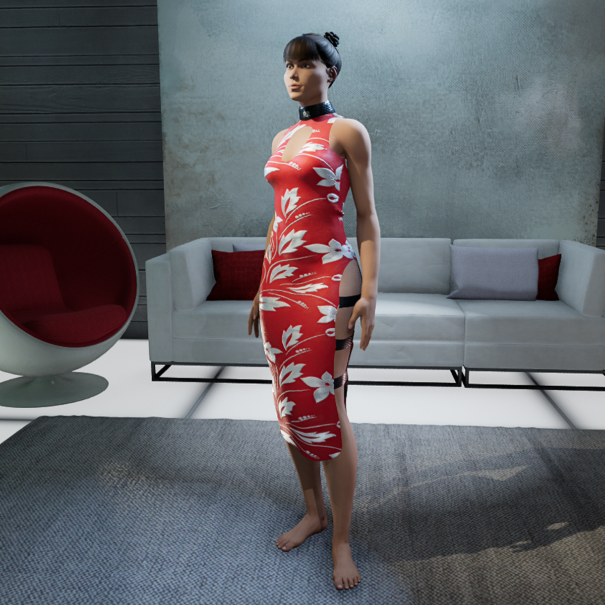 High quality gown with leather parts and shiny floral pattern. Please don´t forget the ratings ;) Please simulate the clothes before wearing it to adjust it optimally.