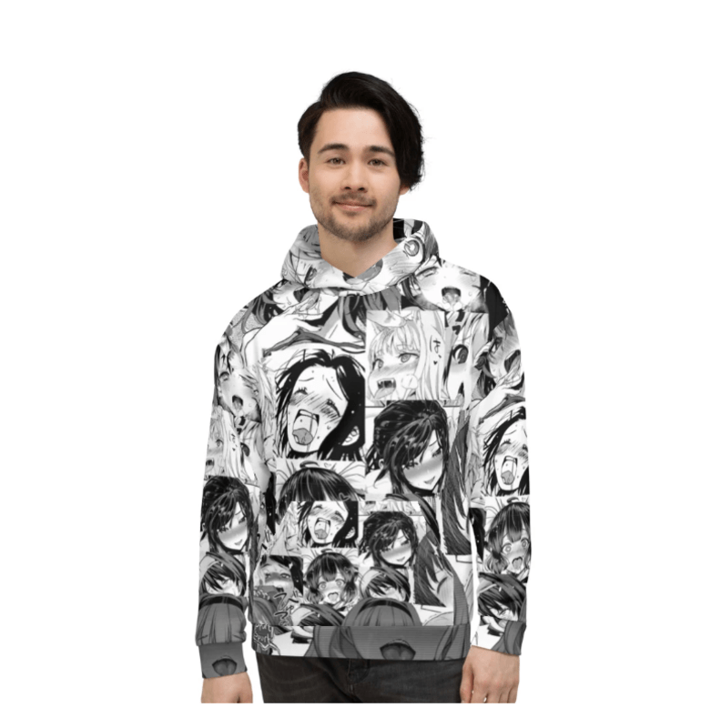 - Black and White Ahegao Hoodie Pull Over