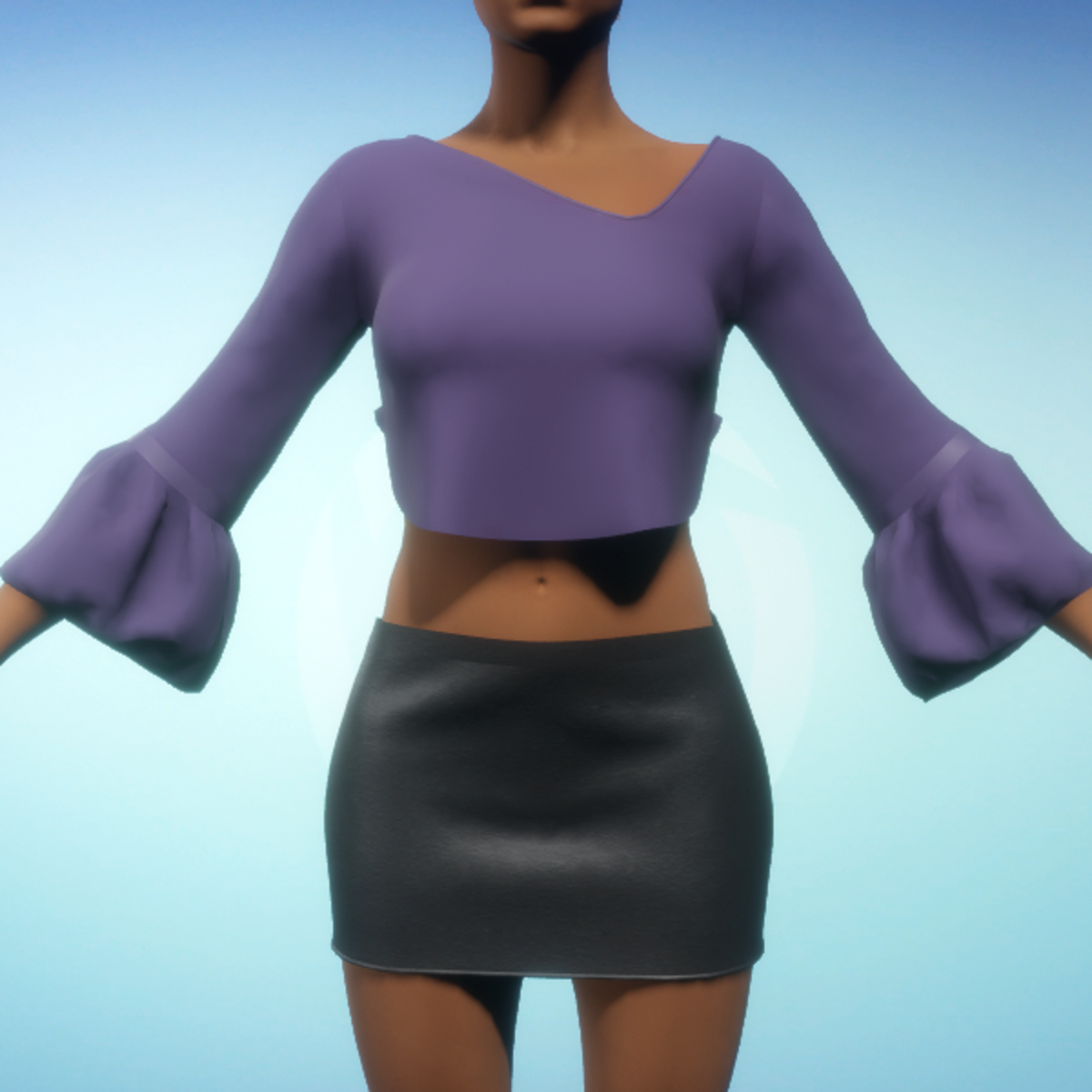 - Cropped Bell-sleeve Top - Grape Chiffon