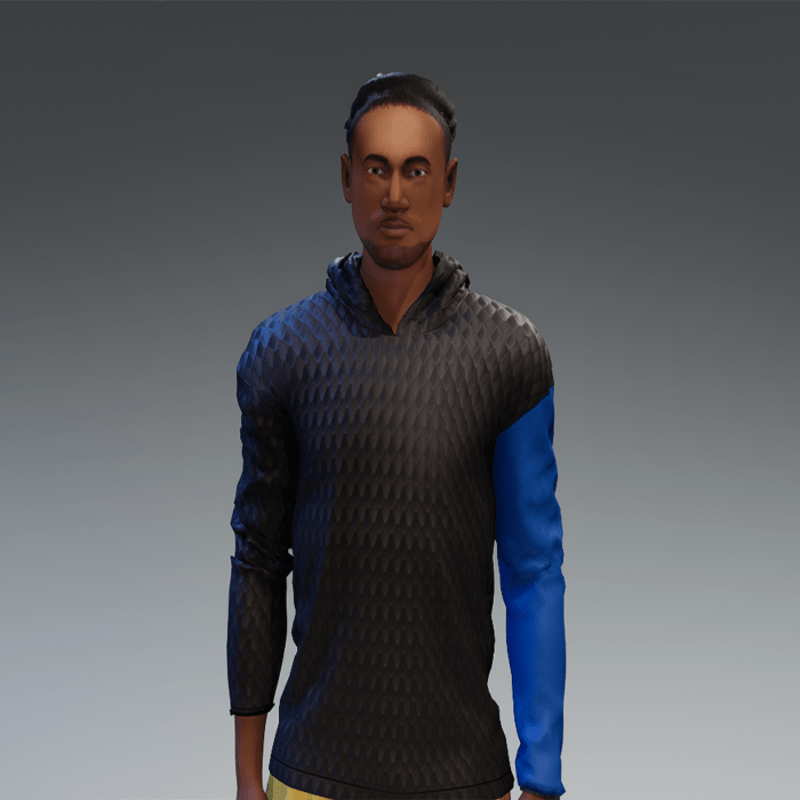 Black and Blue Textured Hoodie With Baggie Sleeves