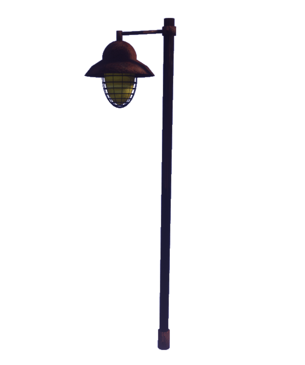 Rusty iron lamp for exterior with yellow glass. Adding a light spot right under the glass it gives a very nice light effect on the yellow glass.