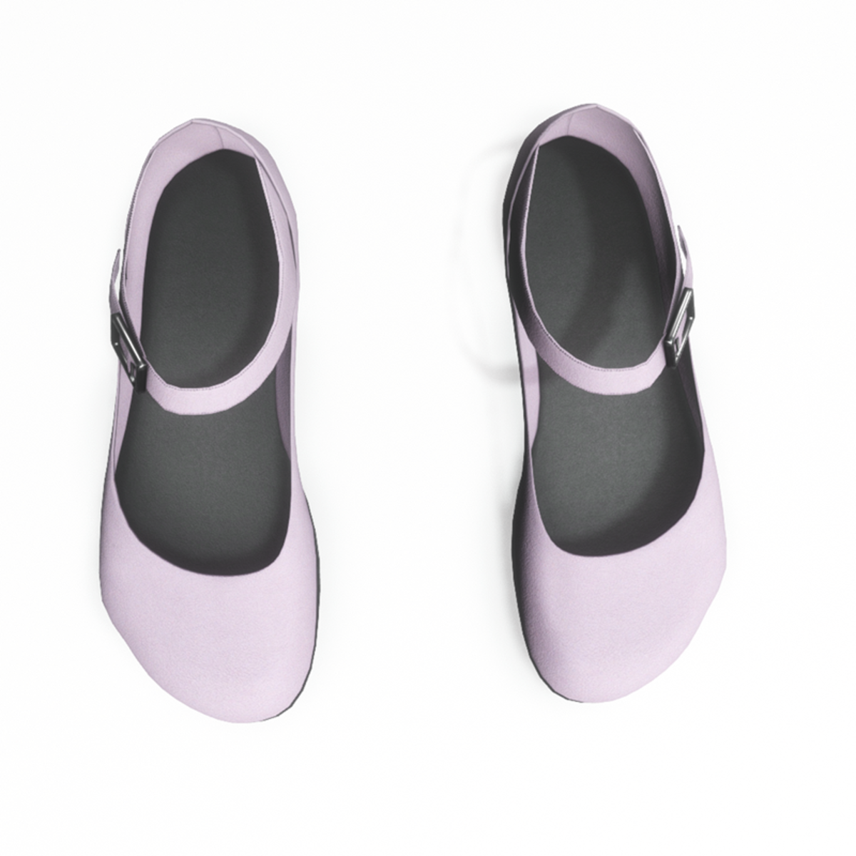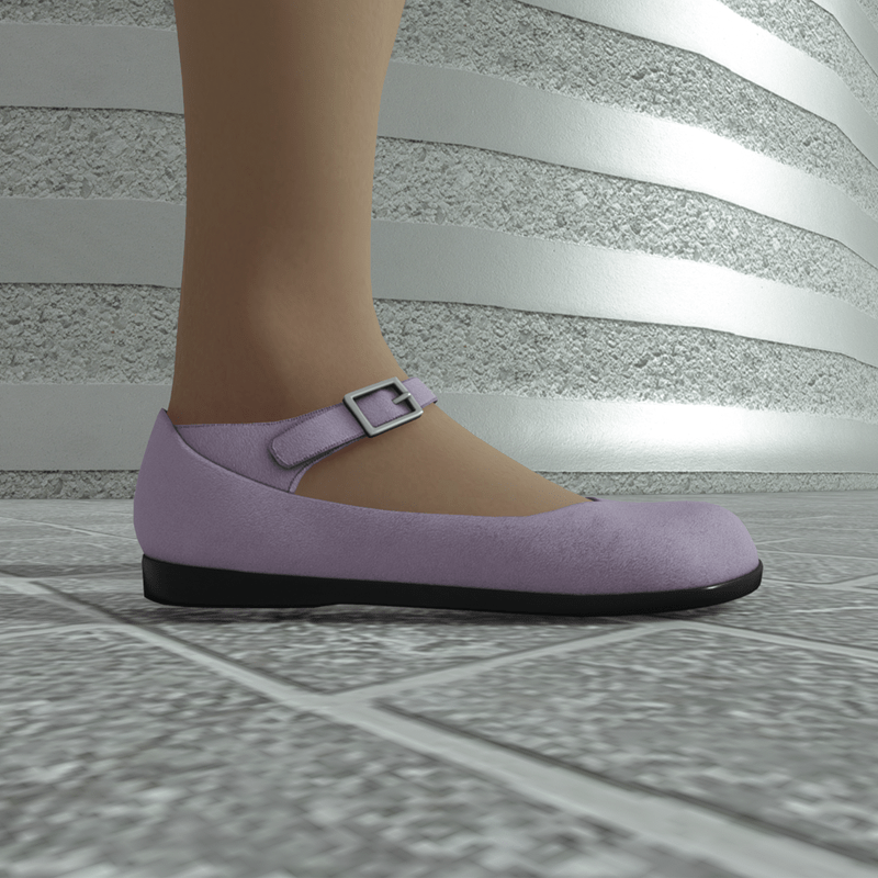 A pair of mary jane style cute flat shoes, with matte purple leather upper and black rubber outsole. It fastens with a buckle strap. Please get the free demo item to check the style and fitness before purchasing here: https://store.sansar.com/listings/478f1485-b477-4cdd-b242-f2a11c482700/av-20---mary-jane-flats---demo