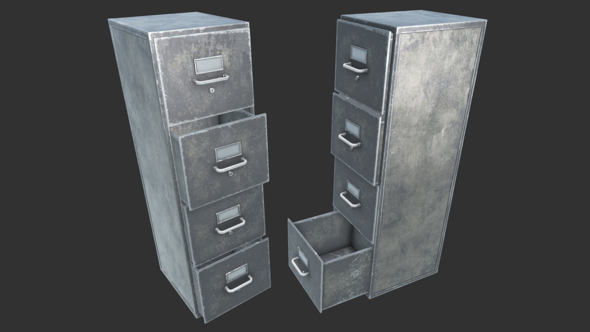 Very Detailed File Cabinets with Realistic High-Quality PBR Textures Fits perfect for any Interior / Exterior environment as Decoration or as furniture, you can open each drawer