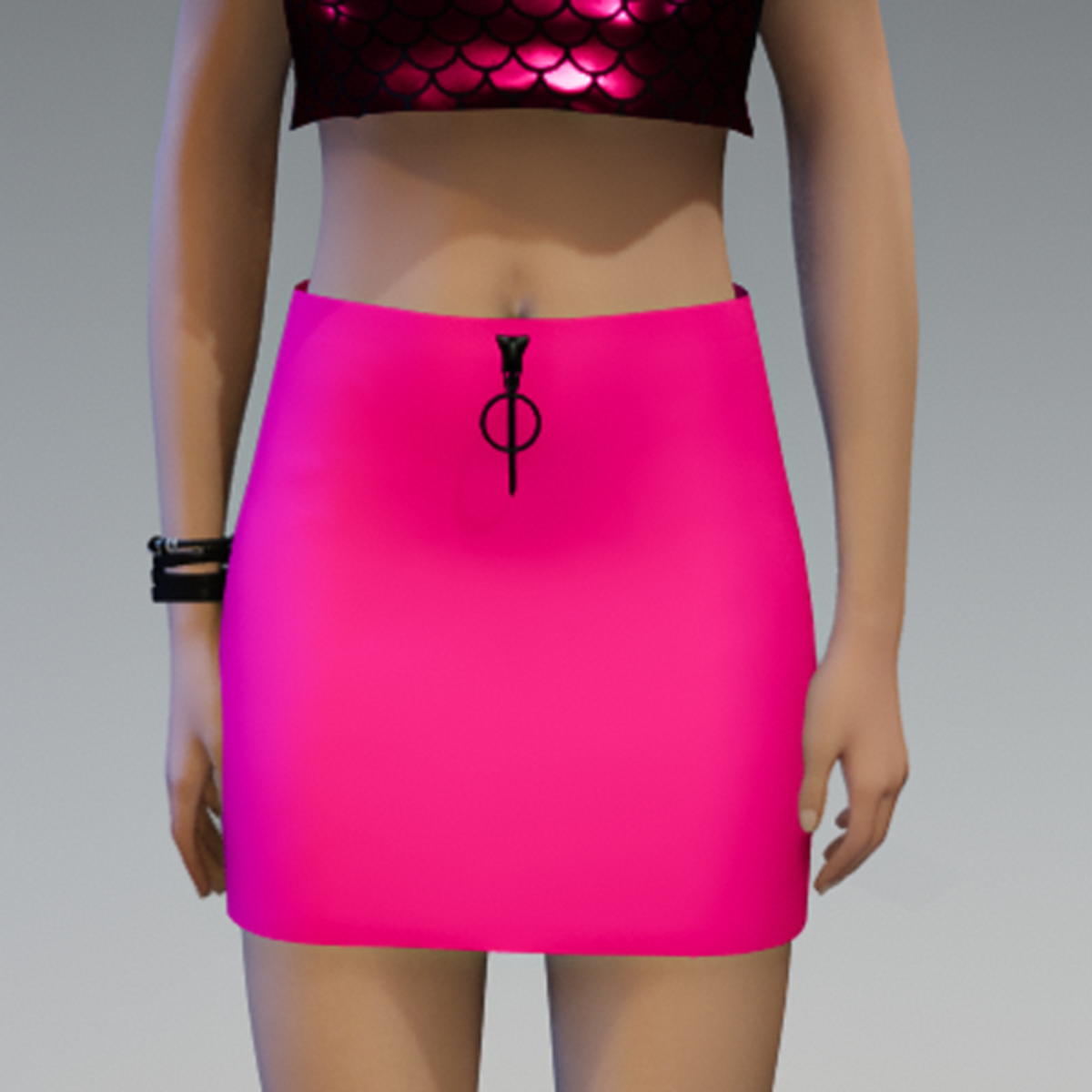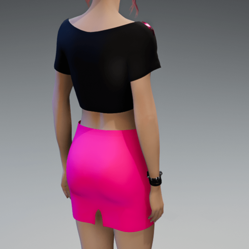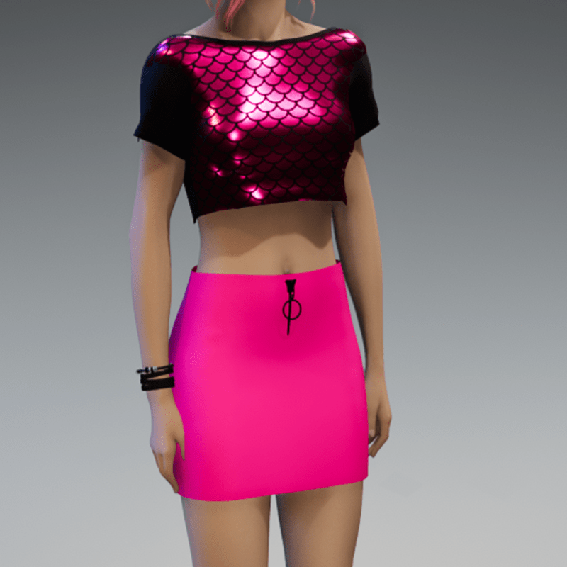 This mini skirt comes with a bright pink fabric and a black zipper on the front. If you're interested in the top showing in the images, check also my "Mermaid Crop Top Pink Shiny Metalic" in my store. Enjoy!