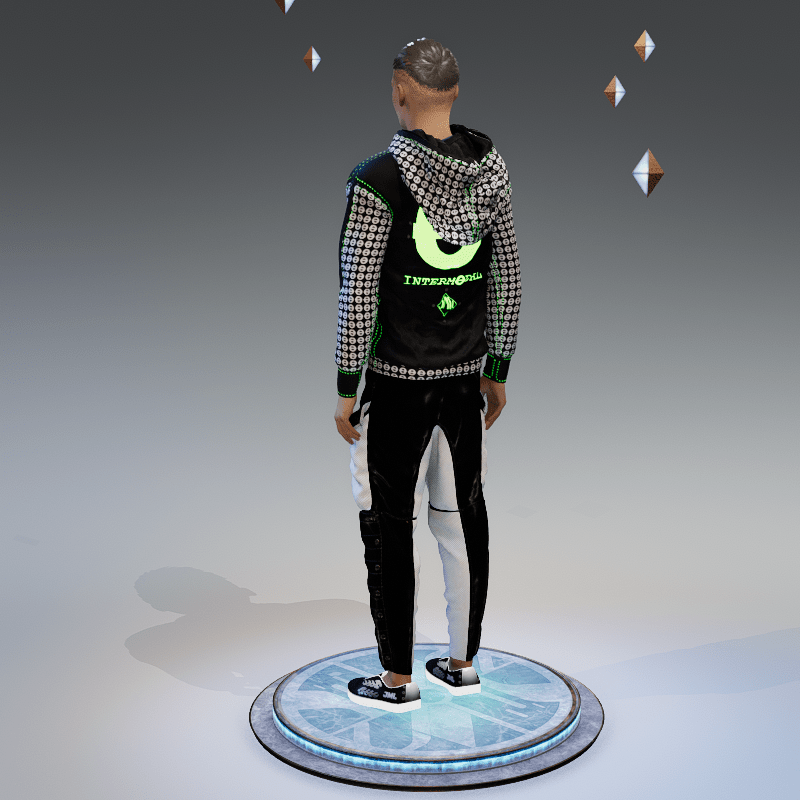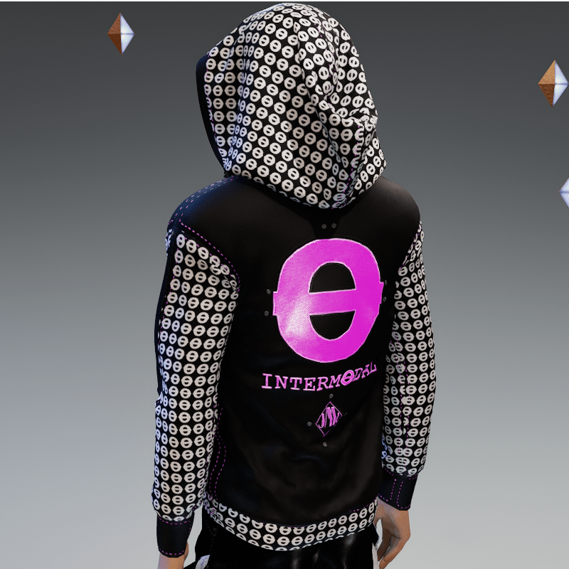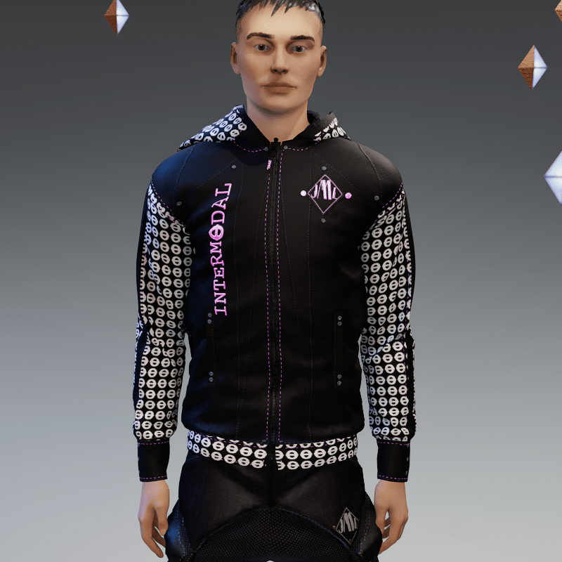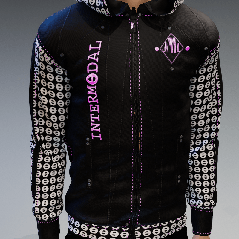hoodie designed in collaboration with INTERMODAL INTERMODAL is a small electronic music collective that aims to support and encourage creative expression in virtual reality and events is animated and glows in the dark see preview here : https://gyazo.com/31c22b95229e4f4b71c2ad8d079a8ff2 https://gyazo.com/976b5286874af414033ab26c60c339db fits ALL avatars in the store only a little manipulation if needed You can zip or unzip creating different styles For any problem, or suggestion contact me. @ jamal-7001 Thank you