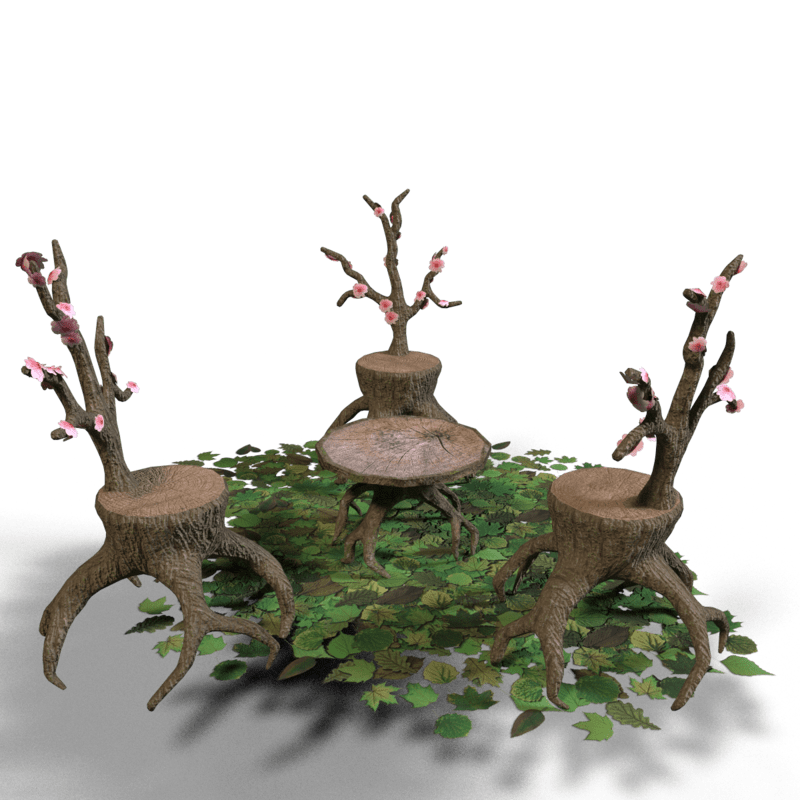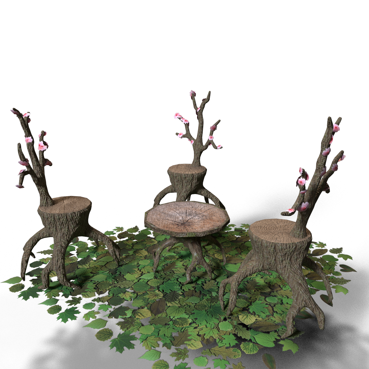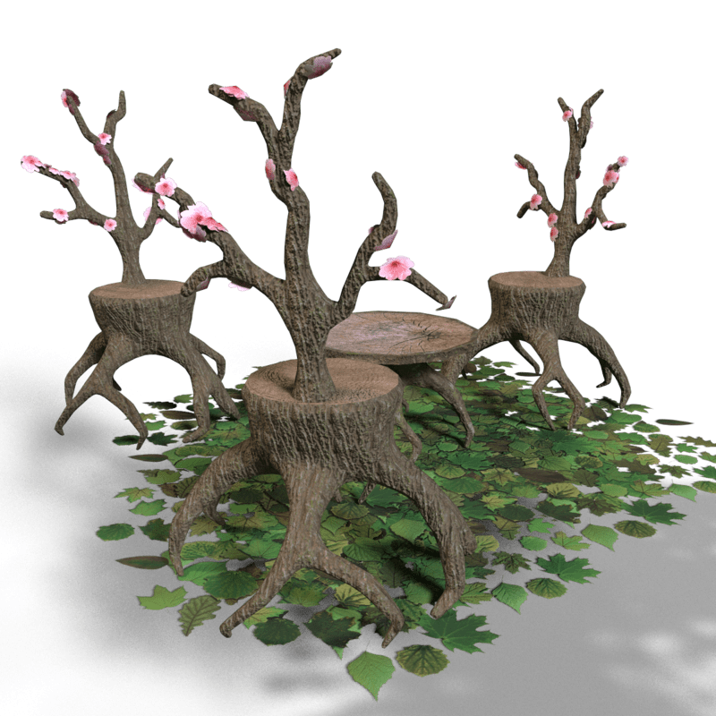Tree Table and Chairs Set Included: 3 different chairs, 1 table, 1 leaf carpet Collision: Yes, on chairs and table, not on the carpet Sit points: Yes, on all 3 chairs