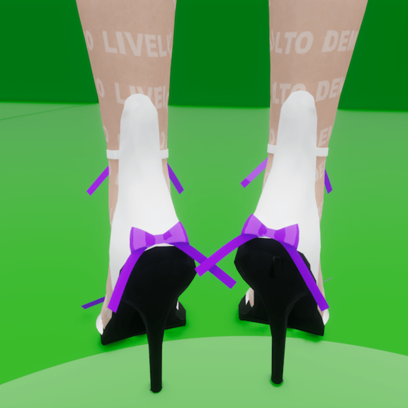 High heels with purple bows for the avatar made by Alfy that you can find in his in world store https://atlas.sansar.com/experiences/alfy/livello-alto-welcome-area or https://store.sansar.com/store/Alfy To see this in world visit my store https://atlas.sansar.com/experiences/timeymaster-3376/timey-master-s-store