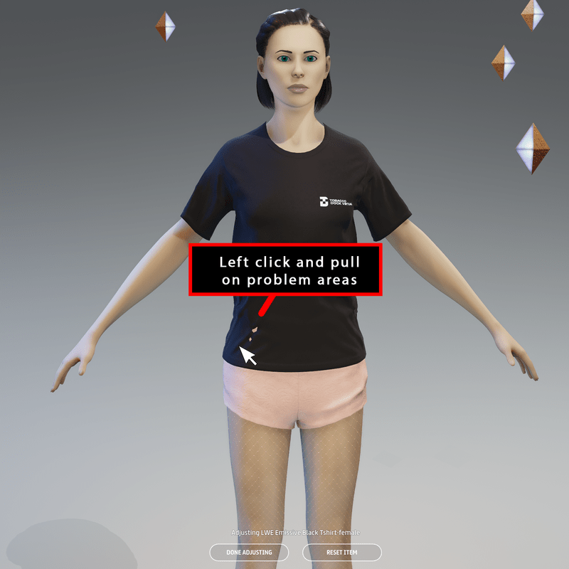 Tobacco Docks - ELROW Tshirt Find this tshirt under male clothing. Use drop down menu and either choose "show all clothing" or "male clothing". Tshirt doesn't fit? Use the simulation button and press "Done Adjusting" when you are satisfied. SEE PICTURES HOW TO SIMULATE CLOTHING