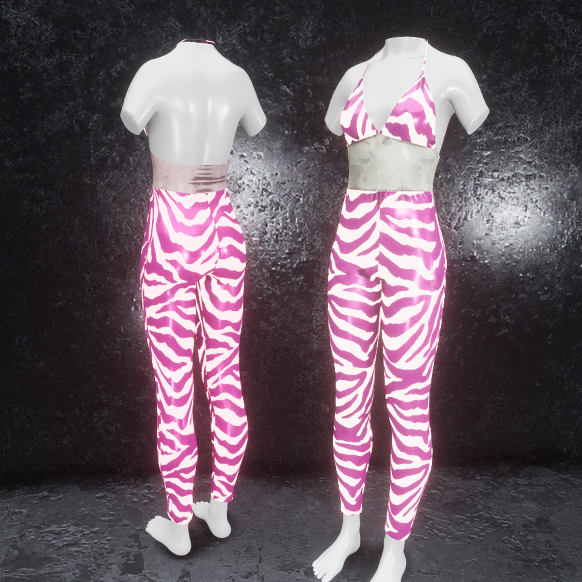 High quality jumpsuit made of realistic metallic material with glowing zebra pattern readdy for avatar 2.0. Please don´t forget the ratings ;) Feel free to simulate the clothes before wearing it to adjust it optimally. Visit my store inworld: https://atlas.sansar.com/experiences/randdy/rr-fashion-shop
