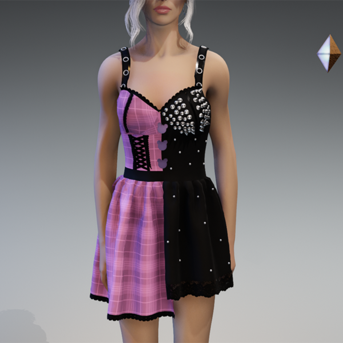 This cute dress comes with two different sides. One side of the dress is longer and comes with some lace and lacing on the front and the other side comes with lots of rivets on it. There are also 3 cute bear-buttons on the front which I did by myself and are the reason why I called this dress "Kuma". Enjoy! <3