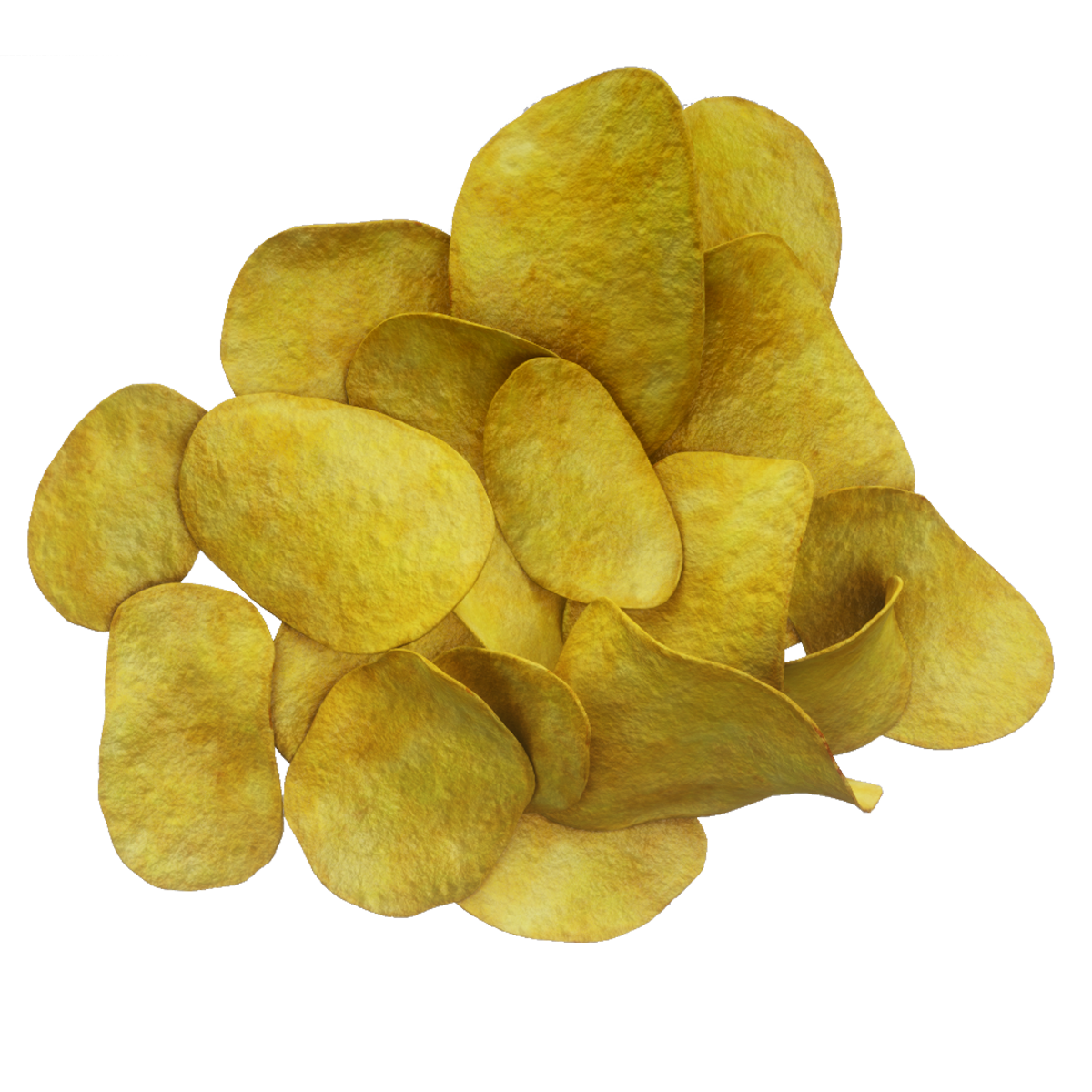 A photoreal model of potato chips for use in any project. The model is built to real world scale and textured to use at any angle.