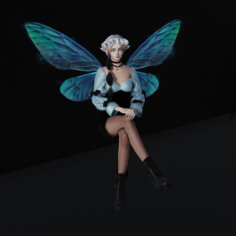 Alternative version with both arms down and hands resting on the knee. Elegant and gentle, looped floating animation that bobs up and down with added wing fluttering designed to work with our fairy wings. Should also animate any wings/objects attached to the wing attach bones with varying results. Works with female framed avatars. Animation gif example: https://gyazo.com/3ce998c1b86f979ba956b8a1aca729a9 https://gyazo.com/1a517b1edc90f075e4ec86f969986fac Contact "TheNick-1981" through Sansar or Sansar discord if you need re-rigging, a custom design or if there is a problem etc.