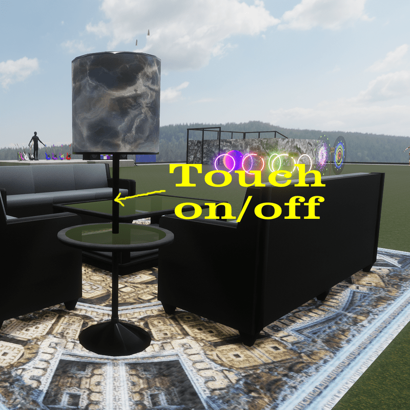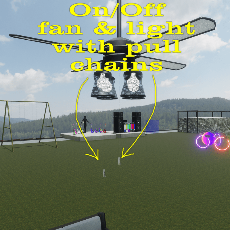 M3N4C3 crafted DJ's Complete living room set with sit points, working lights and ceiling fan. Completely open to add your own textures "at your own risk" you can move each piece but make sure you grab the parent folder of the piece as there are added pieces inside you can lose.