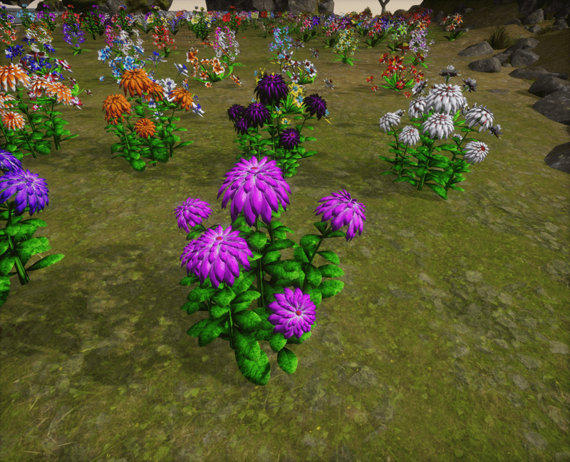 A group of 7 dahlia plants for your lovely lands and gardens. There is no collision on this mesh so you can walk through it. I have many colors. Please note that all my flowers are 100% detailed mesh. Each petal, pollen, stalk and leaf is made by hand and placed by hand. All the textures are also made by me. Enjoy!