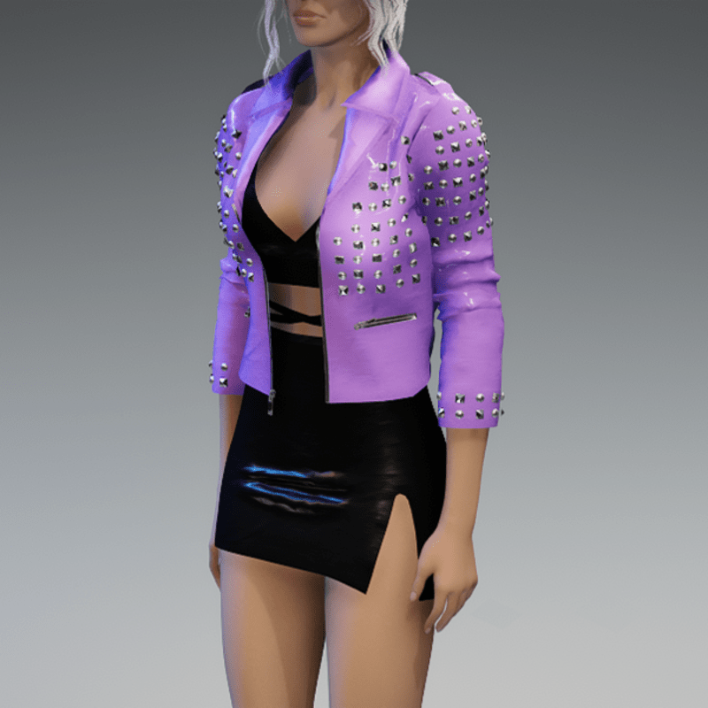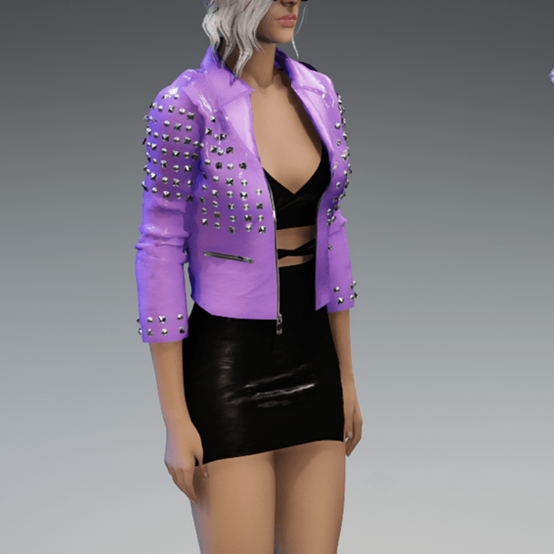 This leather jacket comes with a lot of rivets. You can also find the dress in my store. And please remember to remove your hair before adjusting the jacket. otherwise there will be problems with the collar. Enjoy! <3