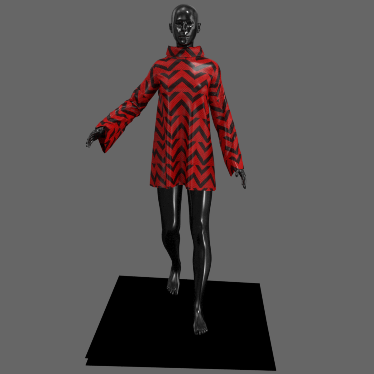 Created on a Default Avatar but the Turtle Neck Short Gown fits on all avatar. The gown is above knee length with flawed sleeves, It comes with Zig-Zag design. Stimulate and enjoy.