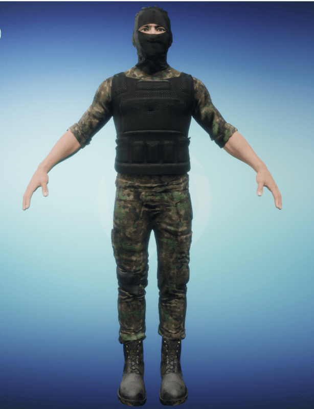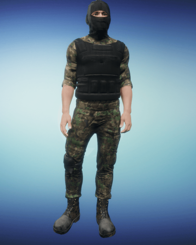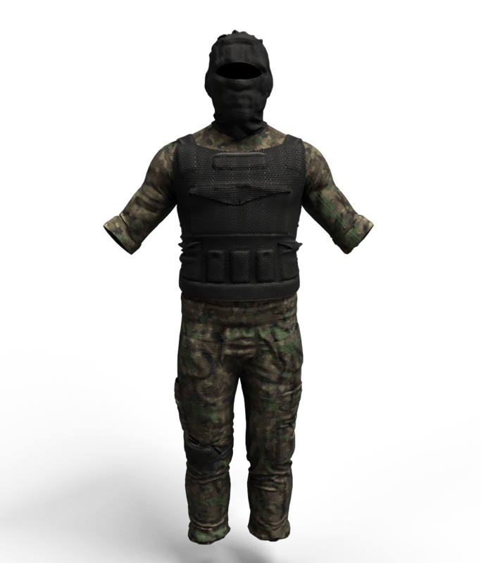 Military Uniform Woodland camo male. ---Single piece uniform include: balaclava, shirt, bulletproof vest, military cargo pants. ---Boots sold separately, you can find them in my store page--- -High quality CGI created by industry professionals- -Top level textures- -You can dynamically simulate this cloth over your avatar to fit your favorite style- Bringing real swag into virtual worlds. Flex your experience!