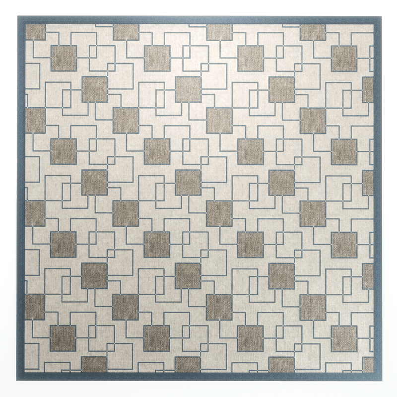 A modern rug, in grey and blue colour, part of the aegean set. With collision. Take a closer look here: https://atlas.sansar.com/experiences/luise/studio-lamda