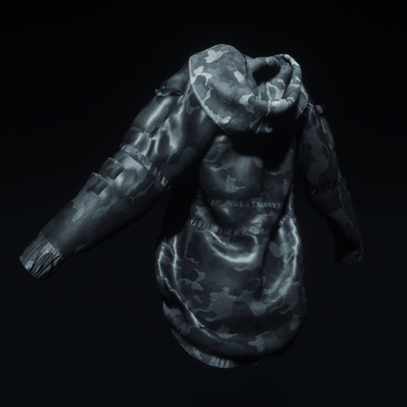 ► A charcoal camouflage jacket for your female avatar. ► Adjustable, detailed, and with 8 pockets.