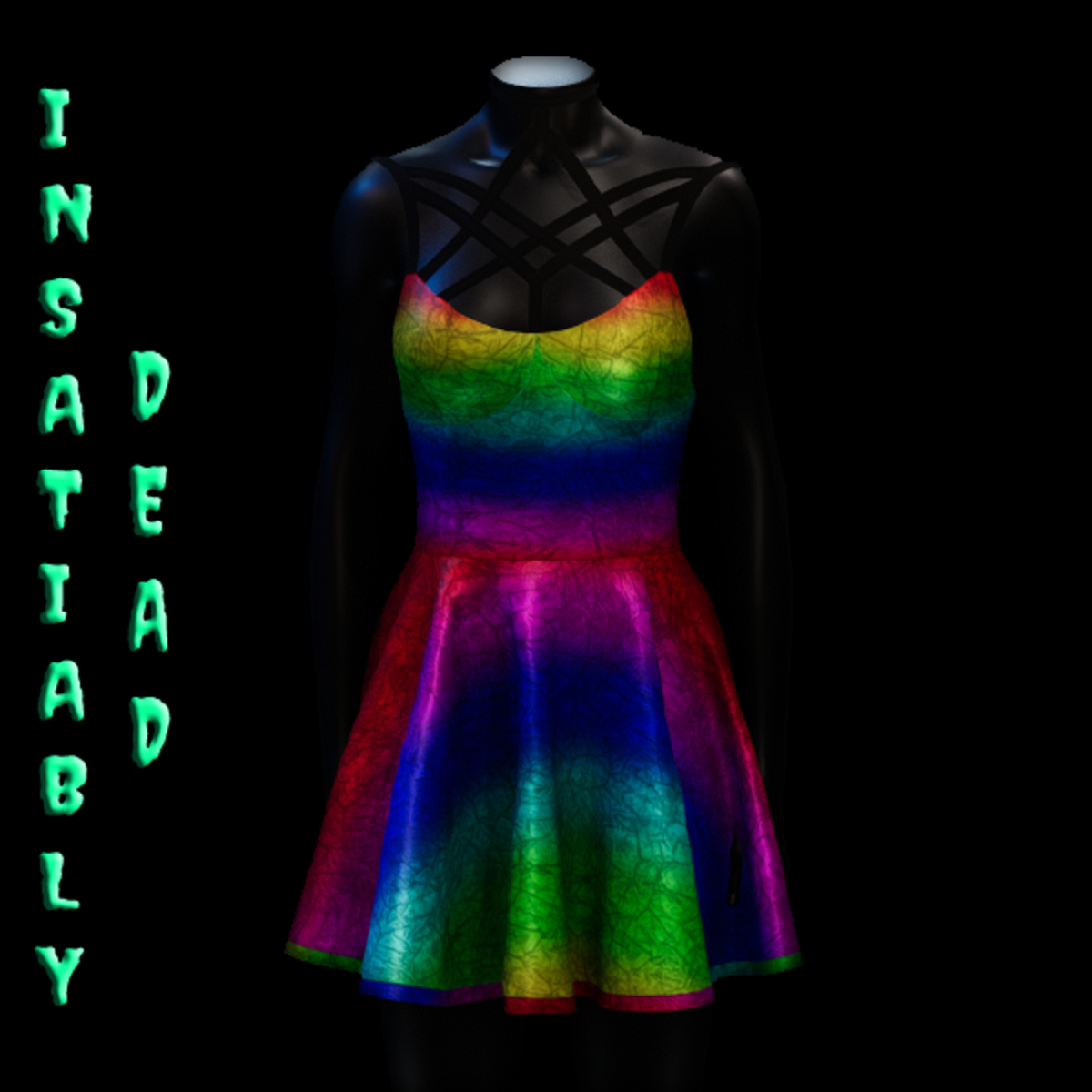 MAGICA SKATER DRESS [RAINBOW]. CREATED IN MARVELOUS DESIGNER WITH AVATAR 2.0. ADJUSTMENT MAY BE REQUIRED! FITTING INSTRUCTIONS CAN BE FOUND BY GOING TO THE LINK BELOW. https://help.sansar.com/hc/en-us/articles/115005693363-Fitting-Marvelous-Designer-clothing-to-your-avatar PLEASE RATE AFTER BUYING! IF ANY ISSUES OCCUR PLEASE CONTACT TEAGAN BROKKEN FOR ASSISTANCE. THANK YOU! <3 <3 GET INSATIABLY DEAD <3