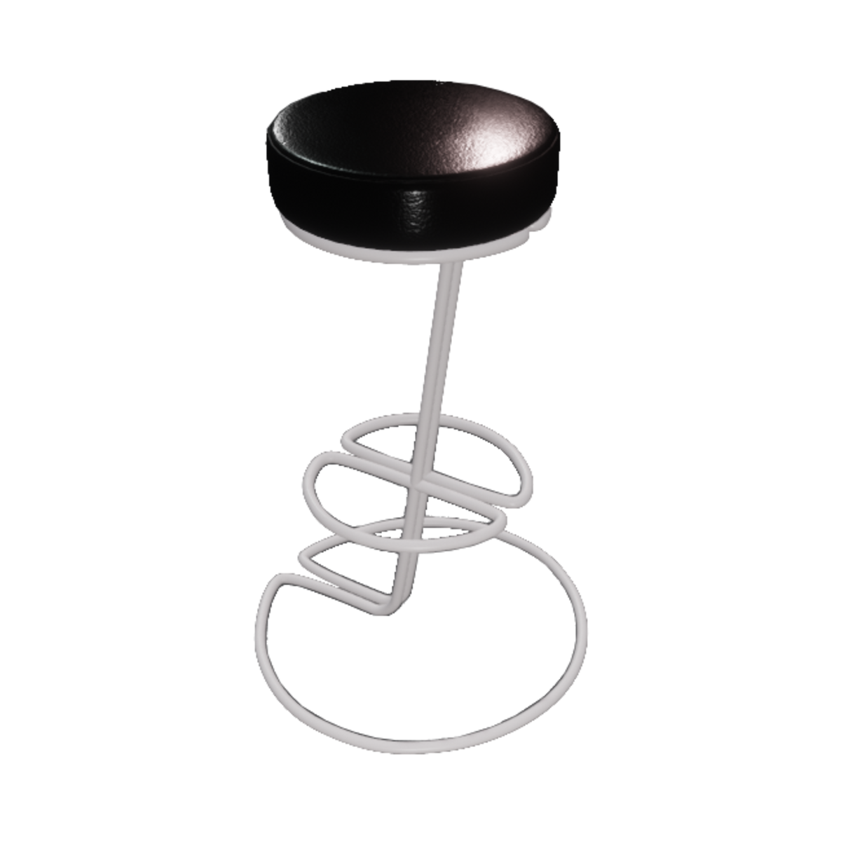 Bar stool with metal base and seat with leather cover. The leather is reflective and shows a typical leather surface pattern. It has a collision mesh in case of setting it to dynamic.