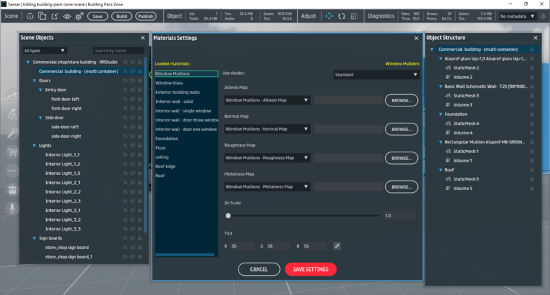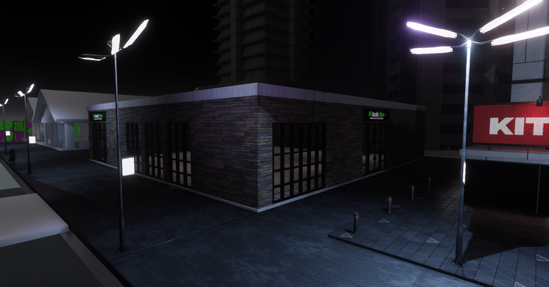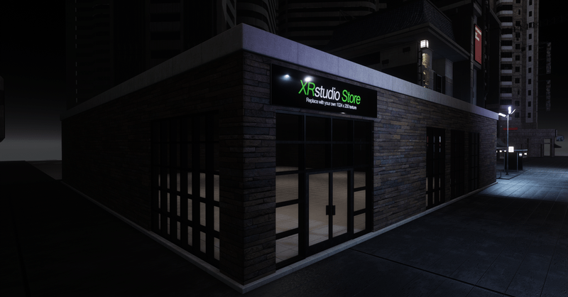 This commercial shop/store building is designed with customization in mind. Texture tiled material with permissions to change out with your own textures. The interior wall texturing is separate from the exterior walling texture. Each one of the four interior walls can have it's own unique texture/material assigned to it. Features two entrances; a main and a side with double doors. The Foundation has added depth to help support being dropped into landscape terrains.. which are quasi flat but not completely flat. * The footprint size is approximately 26.5 x 26.5 meters. * Scripted swinging doors. * An optional store/logo sign board where people can upload their own texture. 1024x200 or image with similar aspect ratio. * Comes with a grid of 3 x 3 starter spot lights inside the store for over head lighting effect. You can see this building in world at https://atlas.sansar.com/experiences/nyushazoryana/xr-studio-architectural-building-showroom