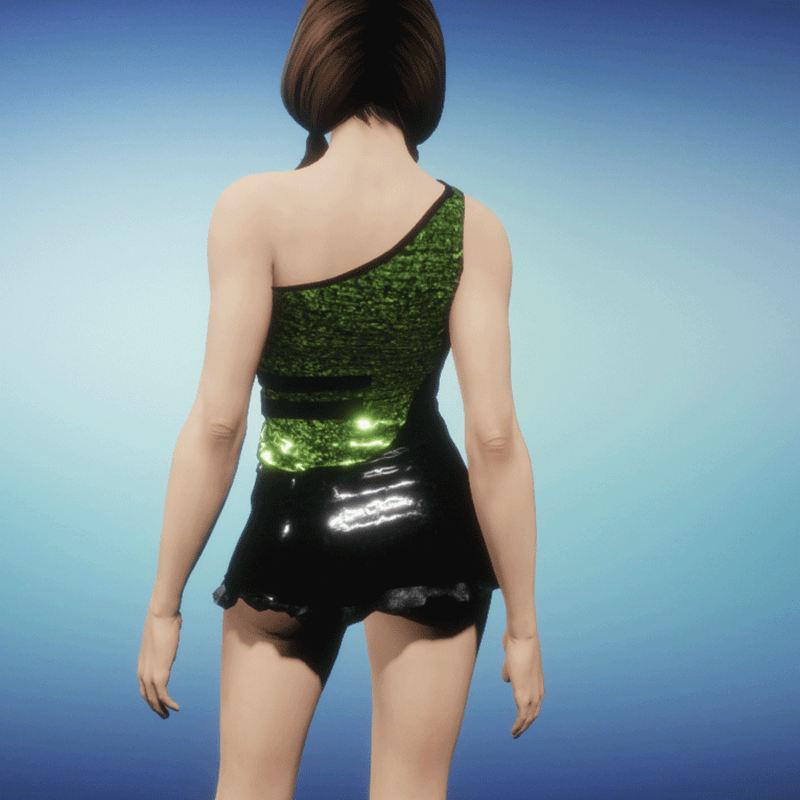 Modern summerdress with glitter latex and leather parts! Please simulate the clothes before wearing to adjust it optimally.